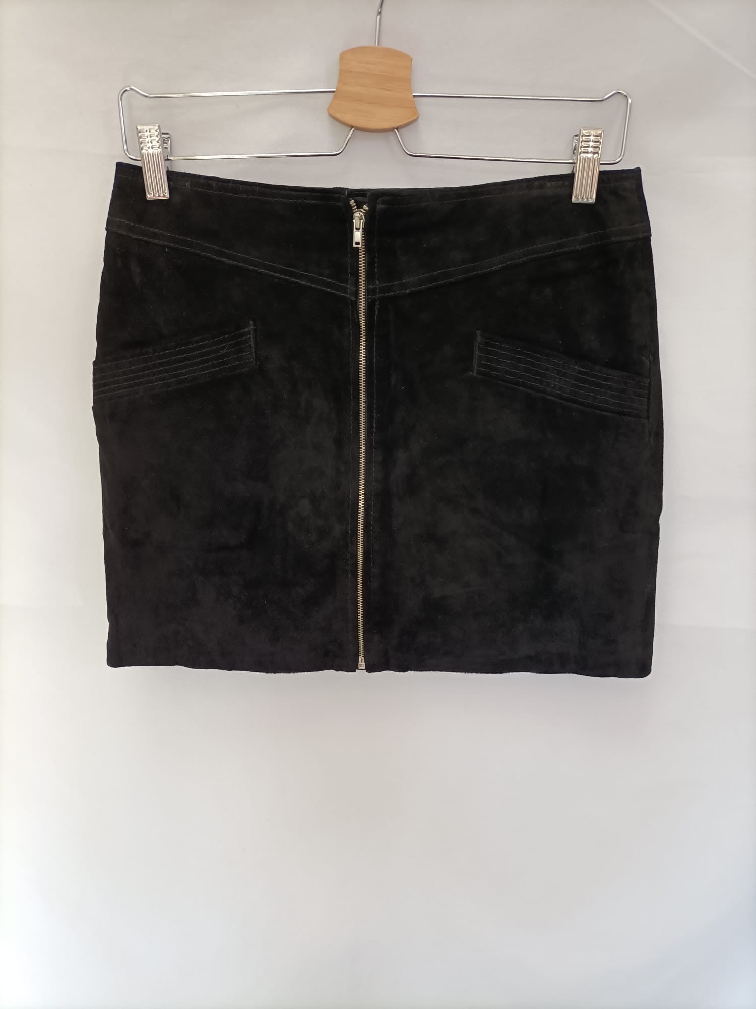 Mango. S. Falda negra de piel con cremallera delantera. No elástico. Cintura 38 cm largo 40 cm