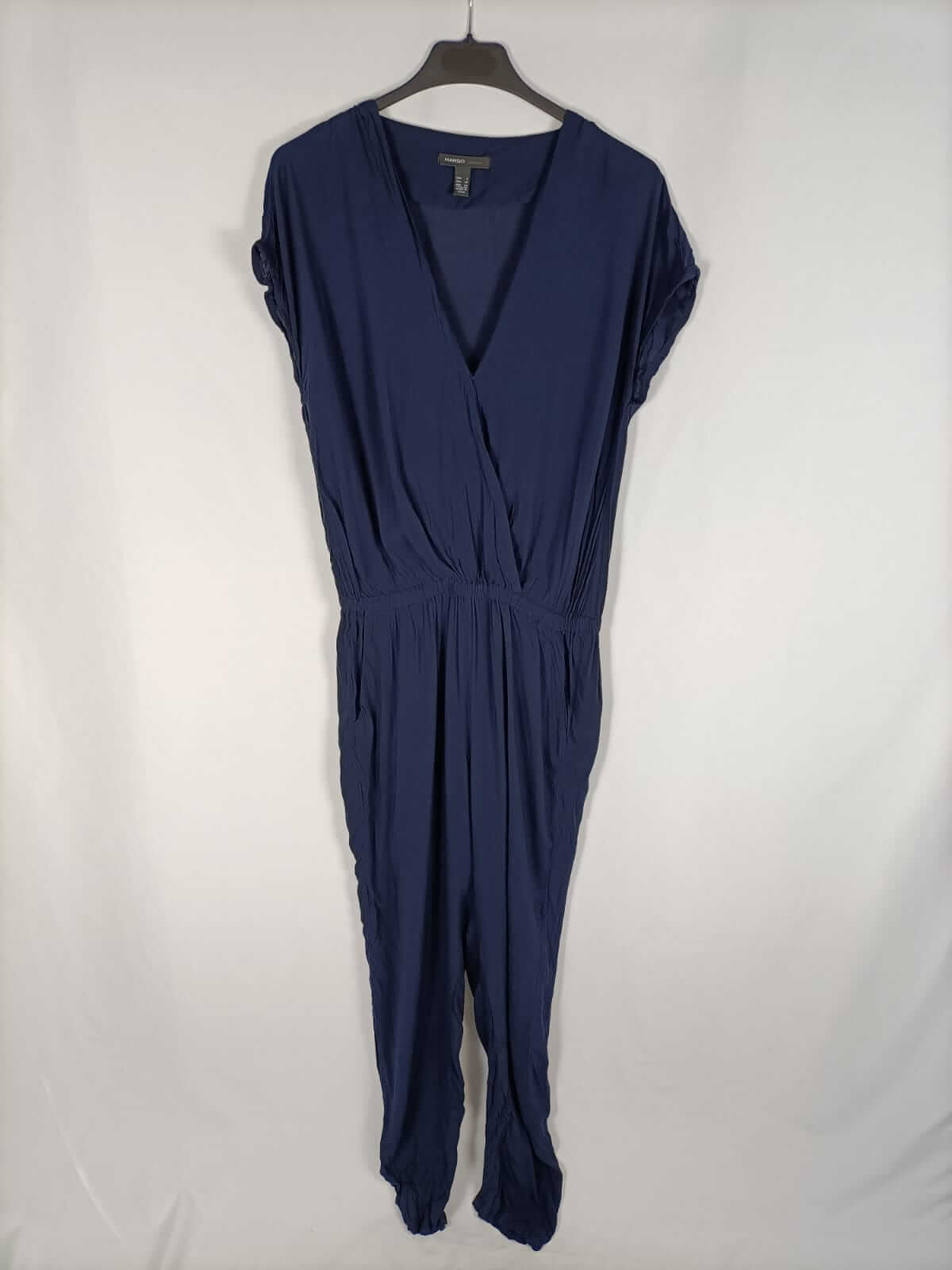 Mango. S. Mono largo azul fluido con la cintura elástica. Escote cruzado. Finito. No elástico. De sisa a sisa 53 cm largo 144 cm