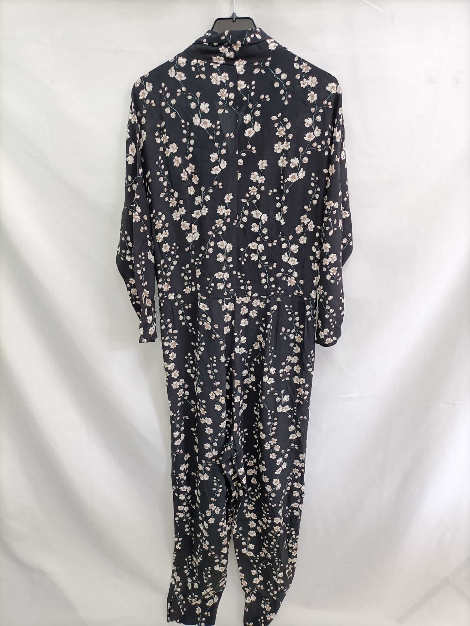 Mango. S. Mono largo negro fluido con flores. Escote cruzado. No elástico. De sisa a sisa 42 cm largo 143 cm