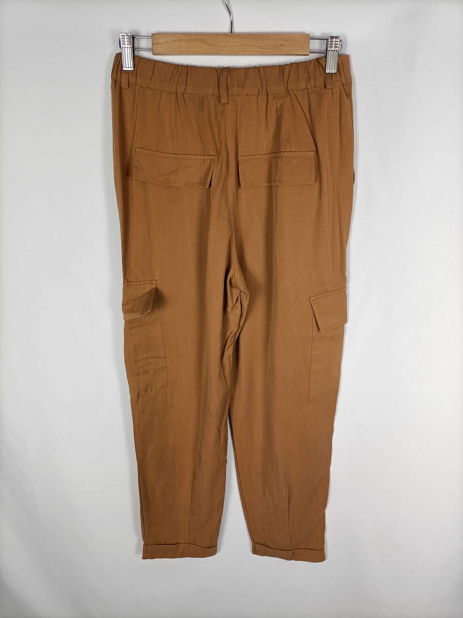 Mango. Xs. NUEVO CON ETIQUETA. Pantalón fluido estilo cargo. Cintura elástica y bolsillos. Finito. Largo 95 cm