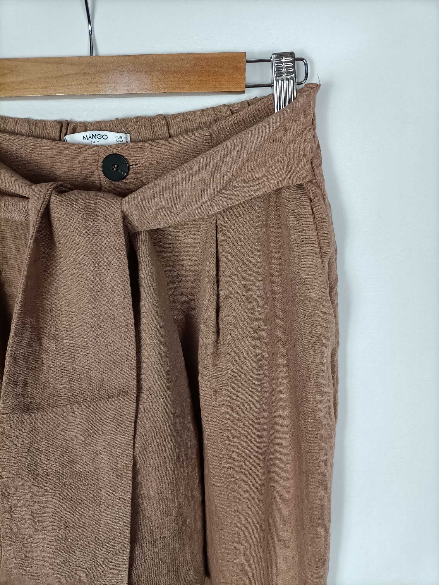 Mango. 36. Pantalón fluido marrón con detalle de lazada. Cintura elástica. Finitos. Cintura 36 cm largo 91 cm