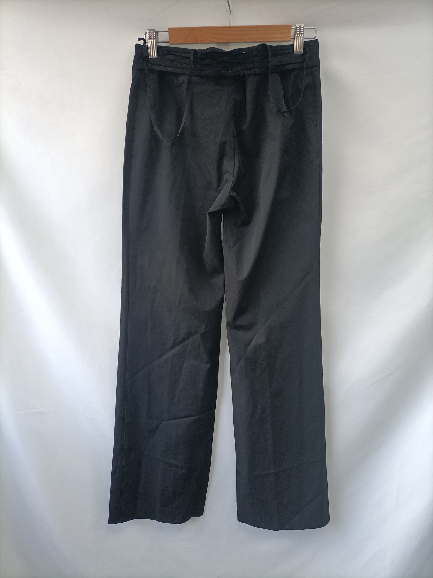 Mango. Pantalón ancho de vestir de tejido tipo licra elástico. Detalle de cuerdas en la cintura por la espalda. Cintura 36 cm largo 113 cm