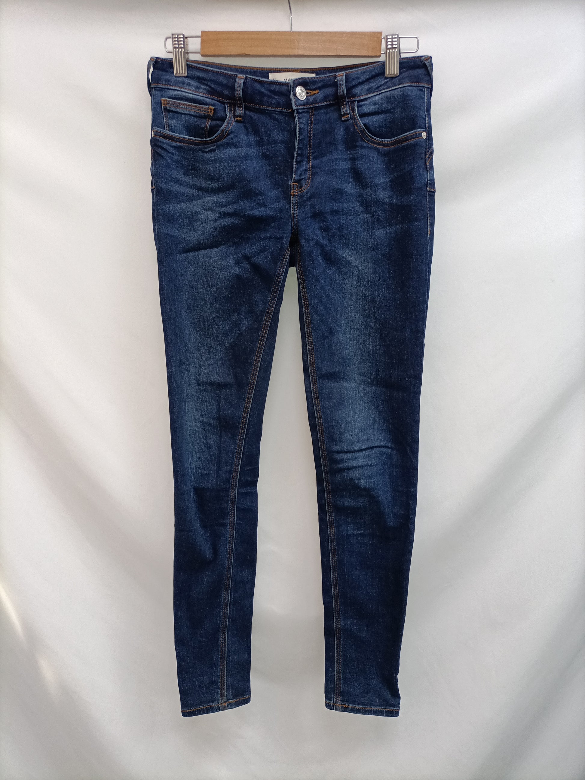 Mango. Vaquero azul oscuro clásico pitillo elástico ancho 37 largo 95.