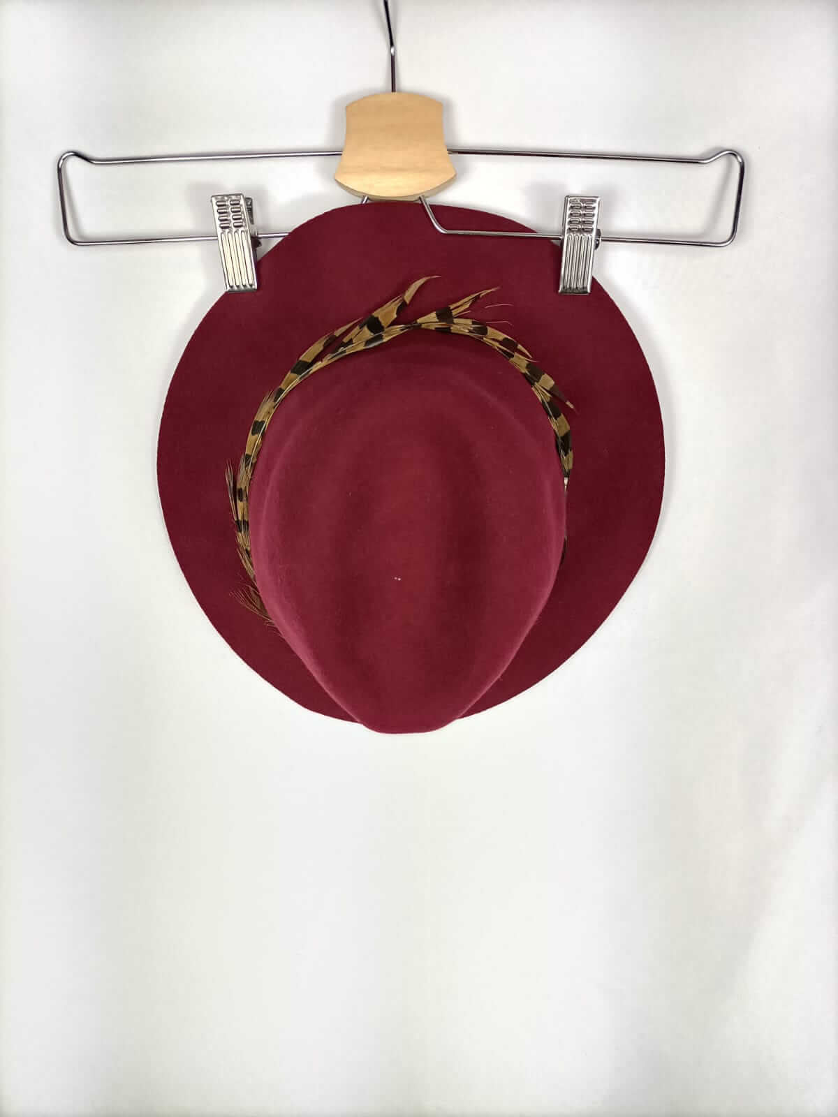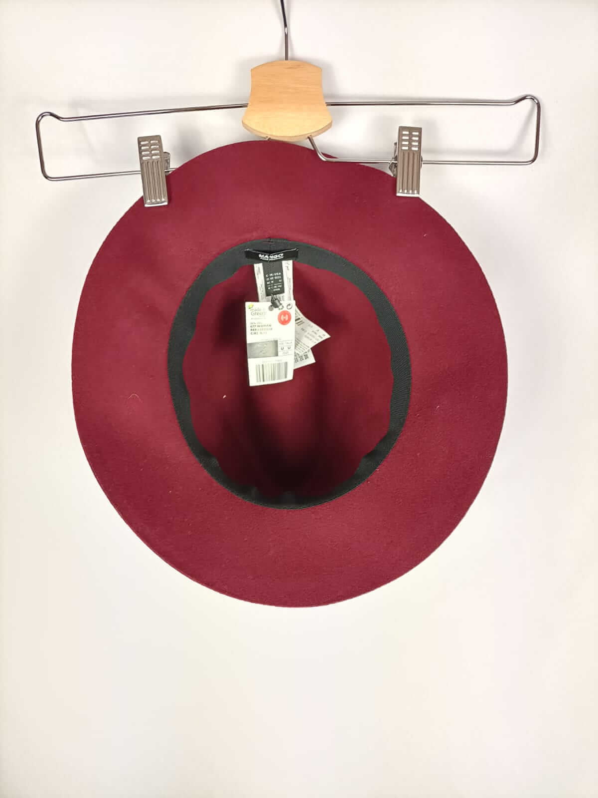 Mango. Tu. NUEVO CON ETIQUETA. Sombrero paño burdeos con plumas. Diámetro 57 cm. 29,99 euros
