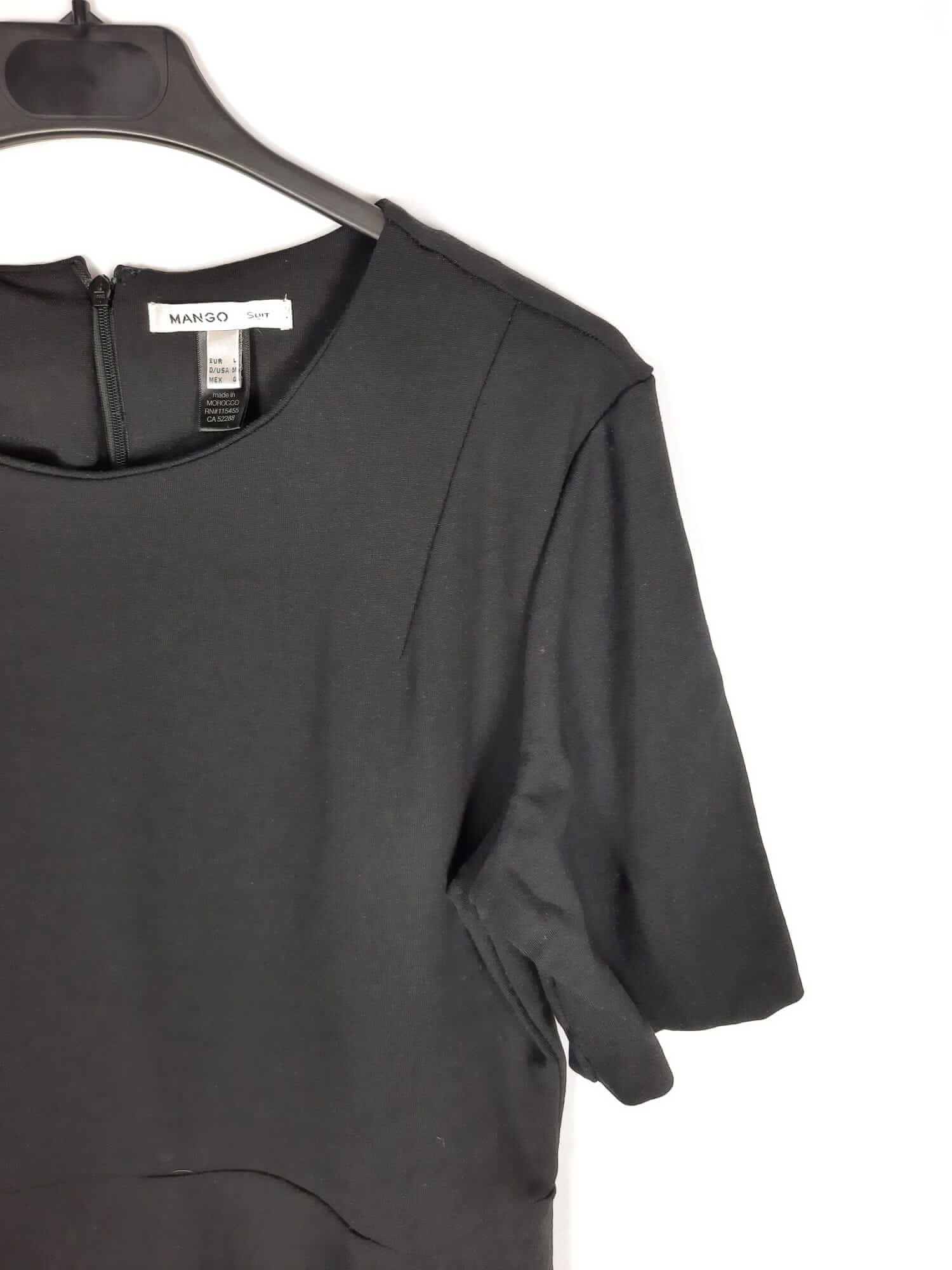 Mango. Top negro elástico con forma con volante. Elástico. Largo 59 cm