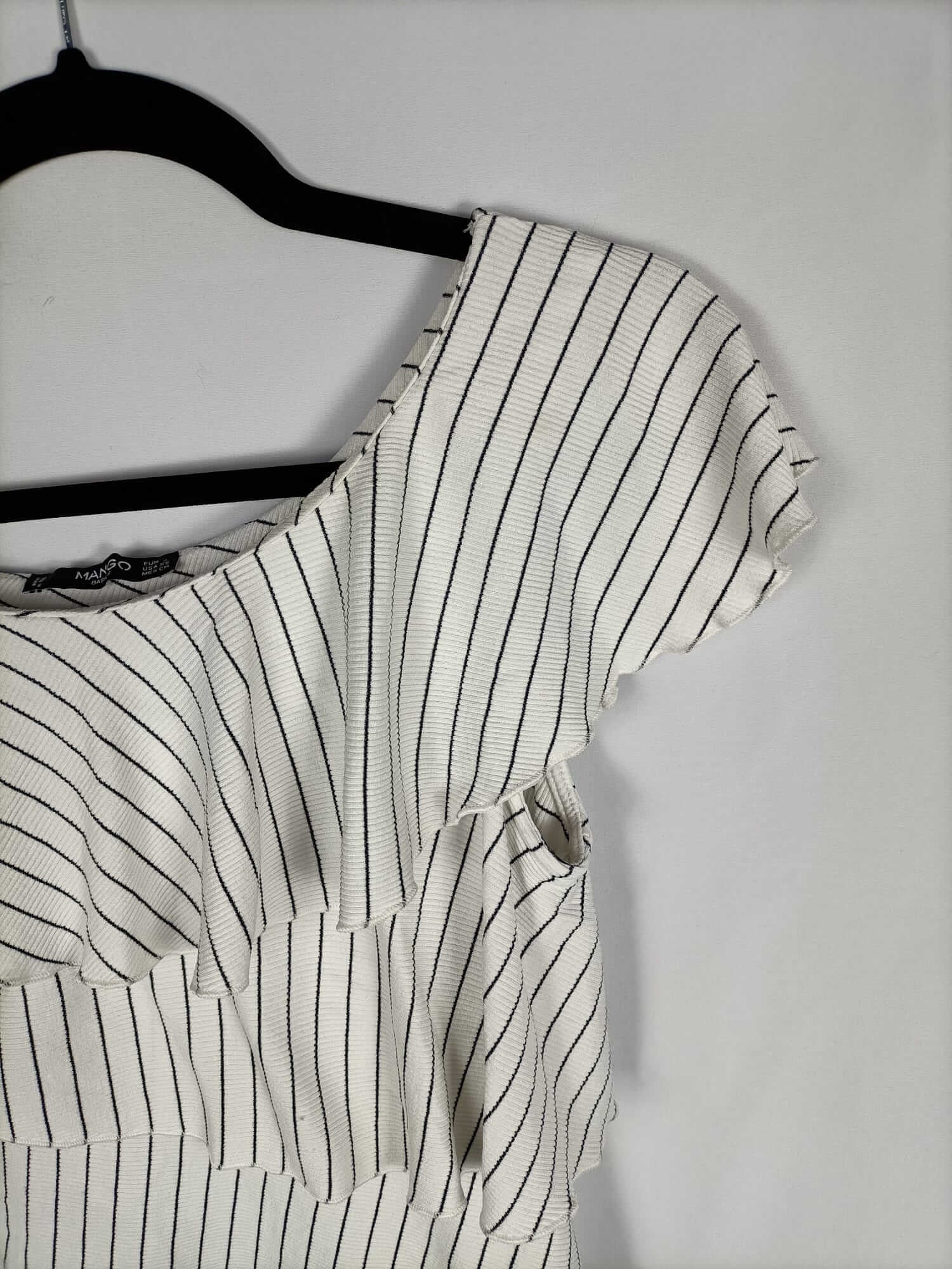 Mango. S. Top de rayas blanco y azul asimétrico y con volantes. Elastico. Largo 50 cm