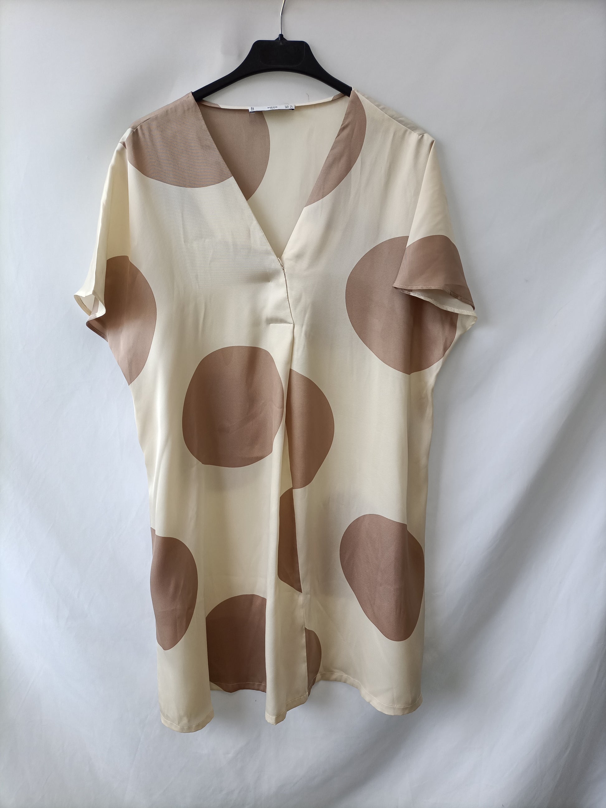 Mango. Vestido fluido beige cin lunares marrones. No es elástico. Muy ligero. Largo 80 cm