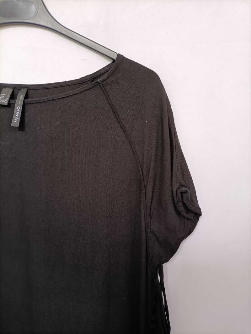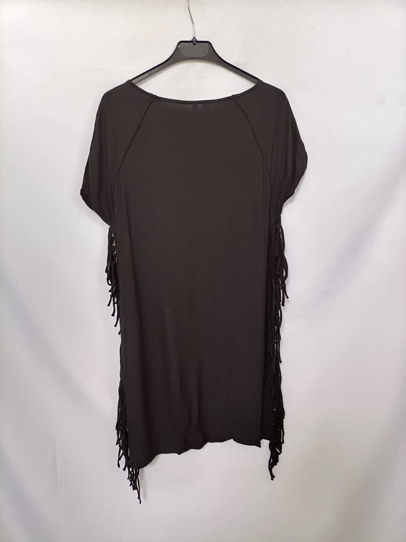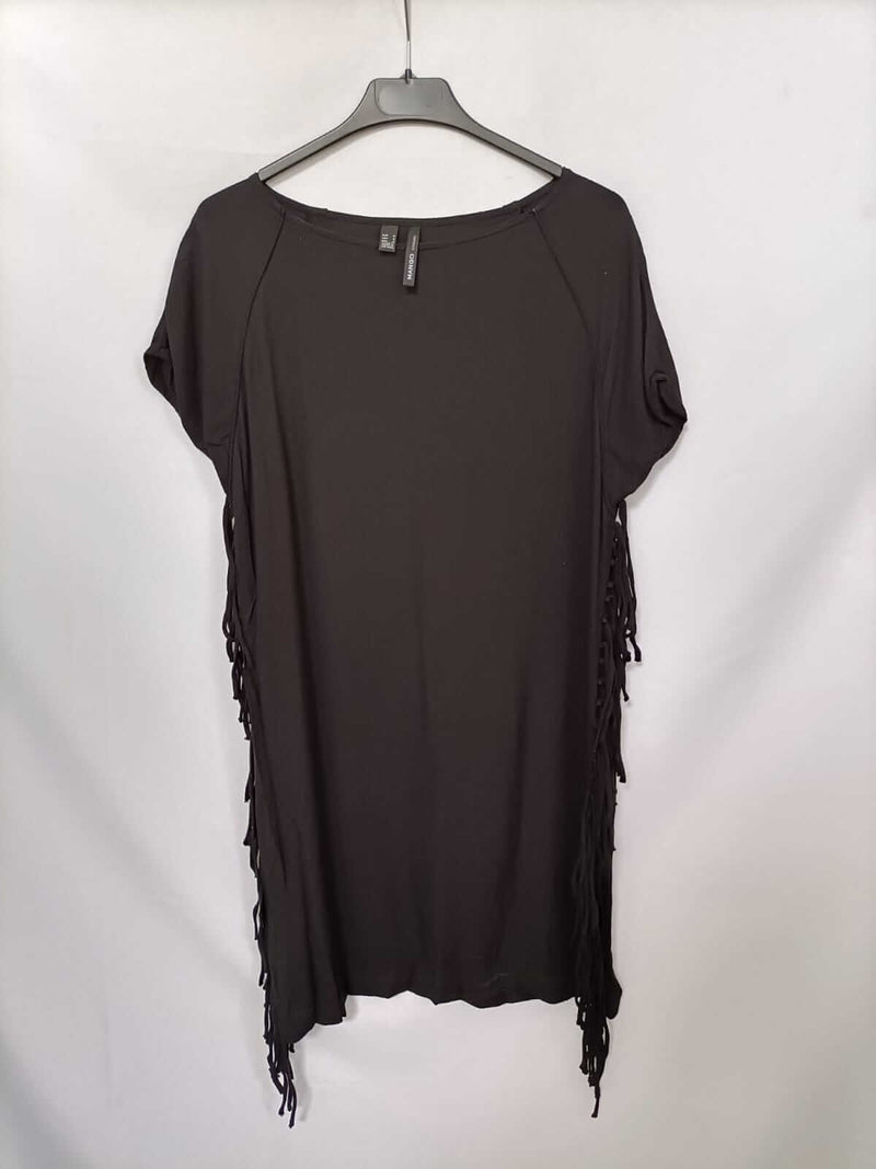Mango. Vestido corto negro fluido con flecos en los laterales. No elástico. De sisa a sisa 53 cm largo 84 cm