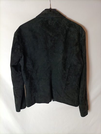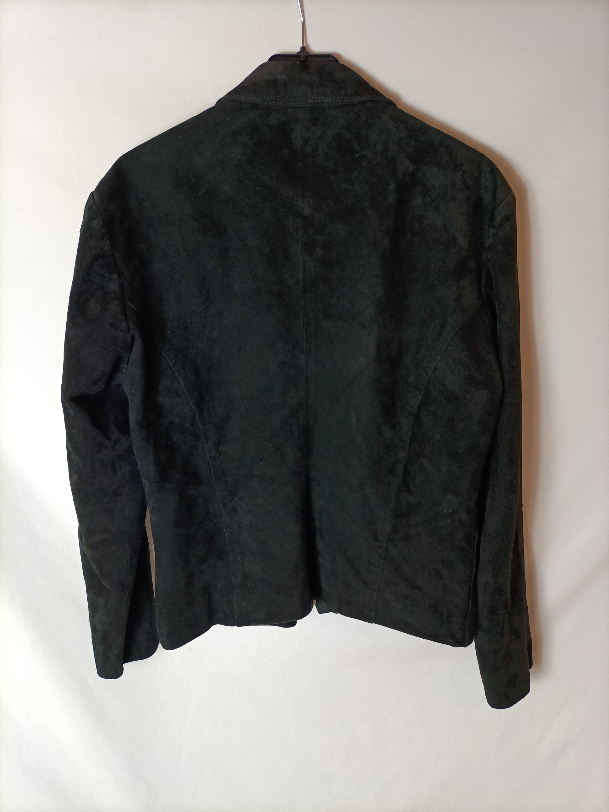 Chaqueta negra cremallera. Parece piel