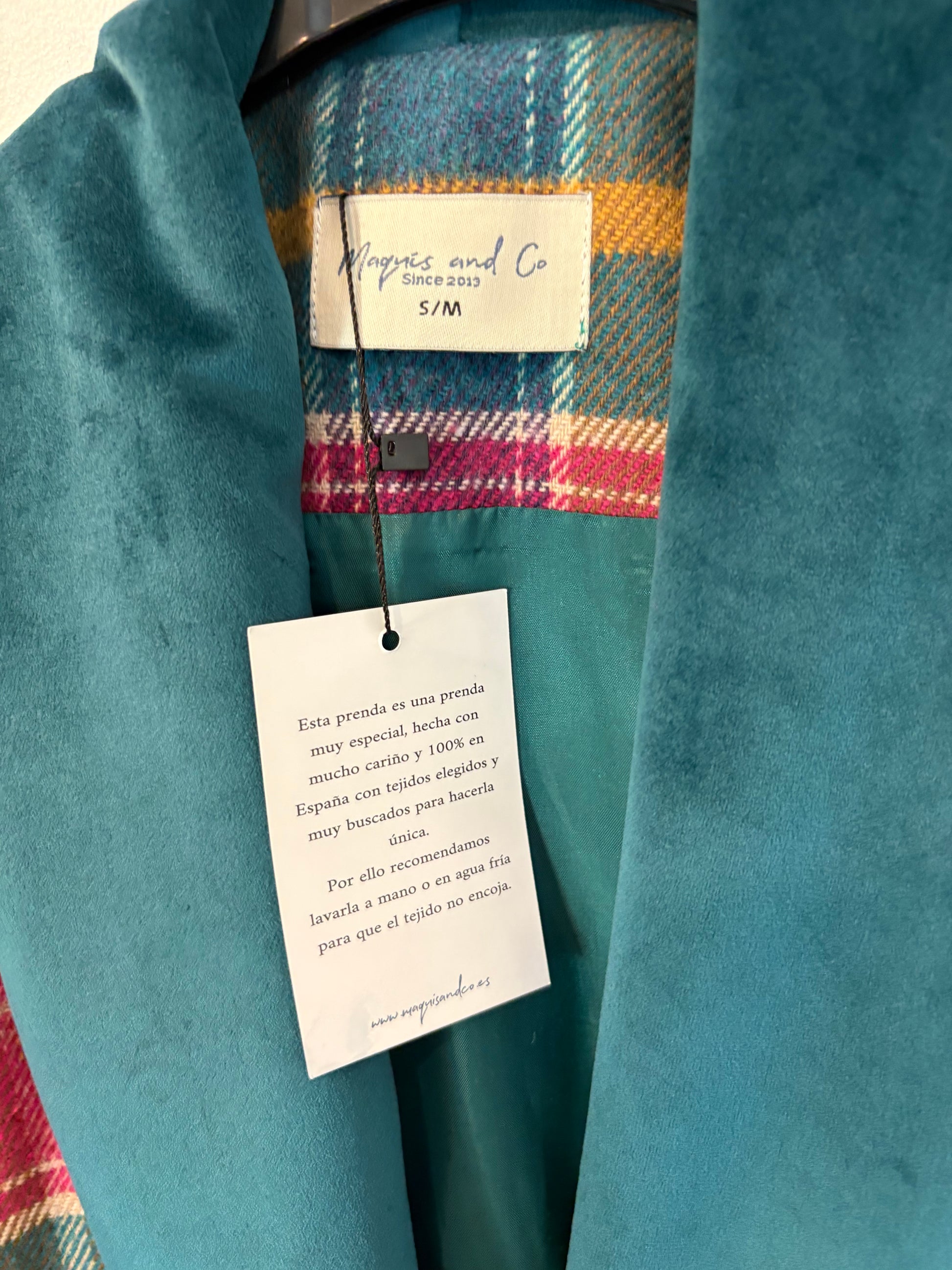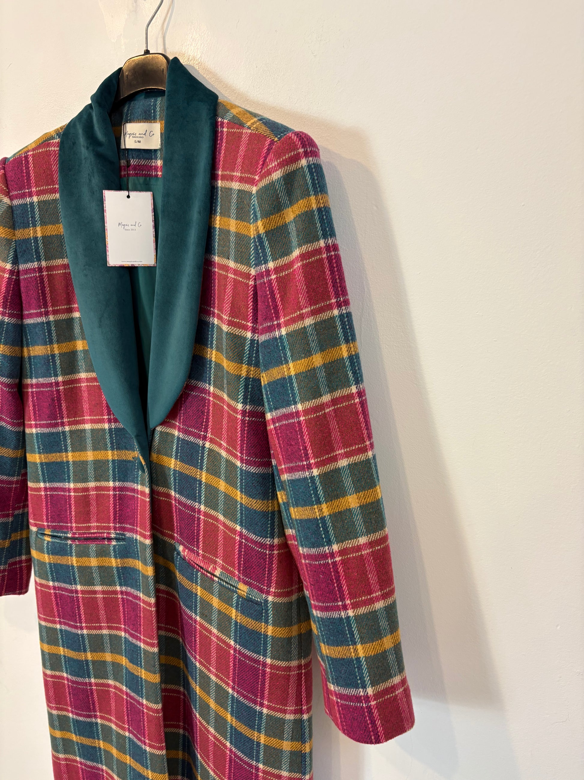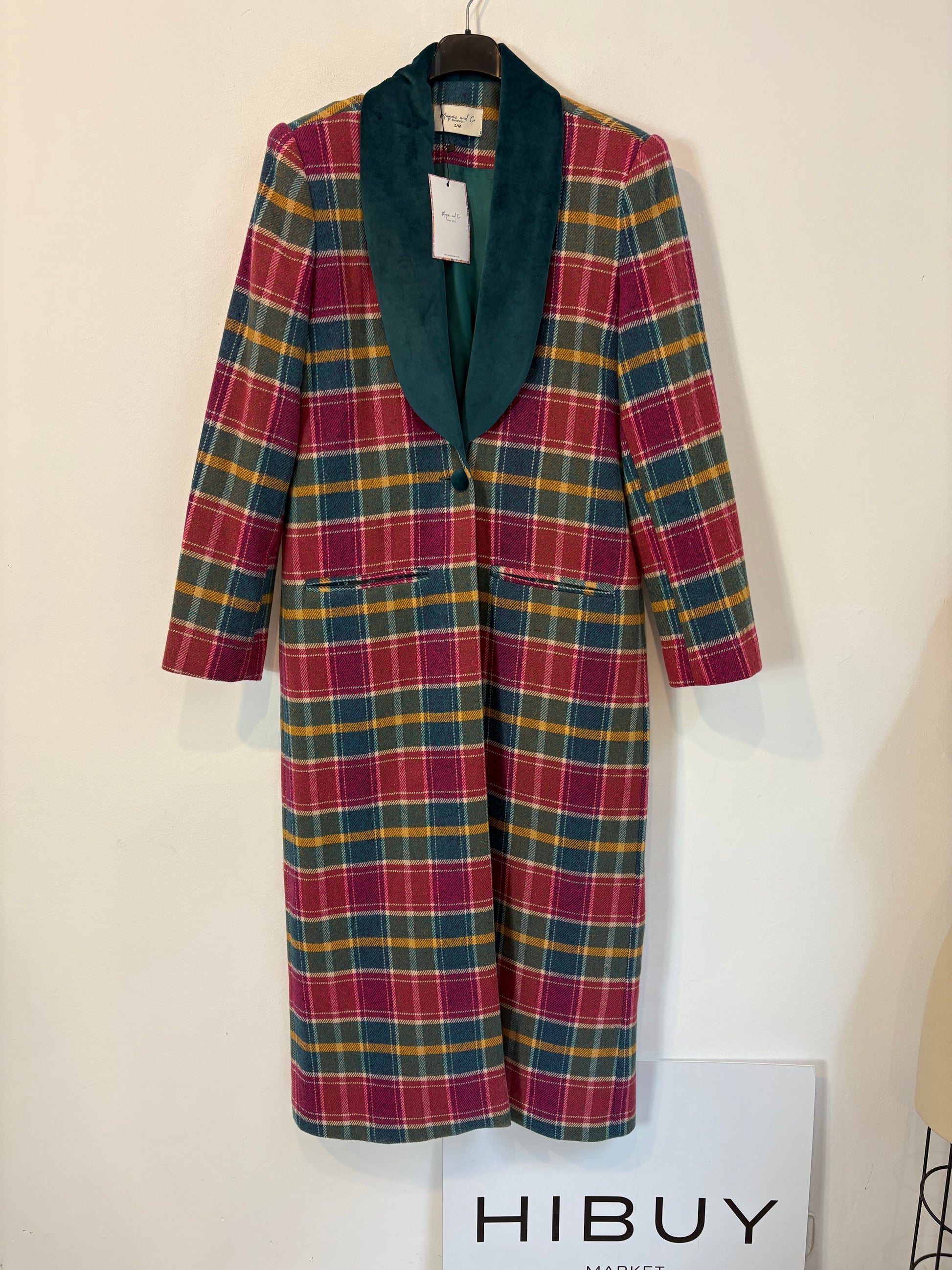 MAQUIS & CO. Abrigo largo cuadros solapa terciopelo