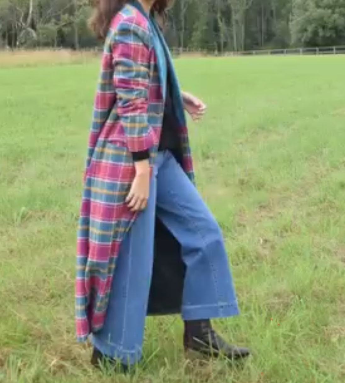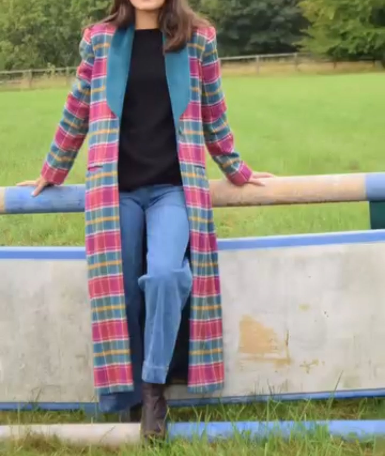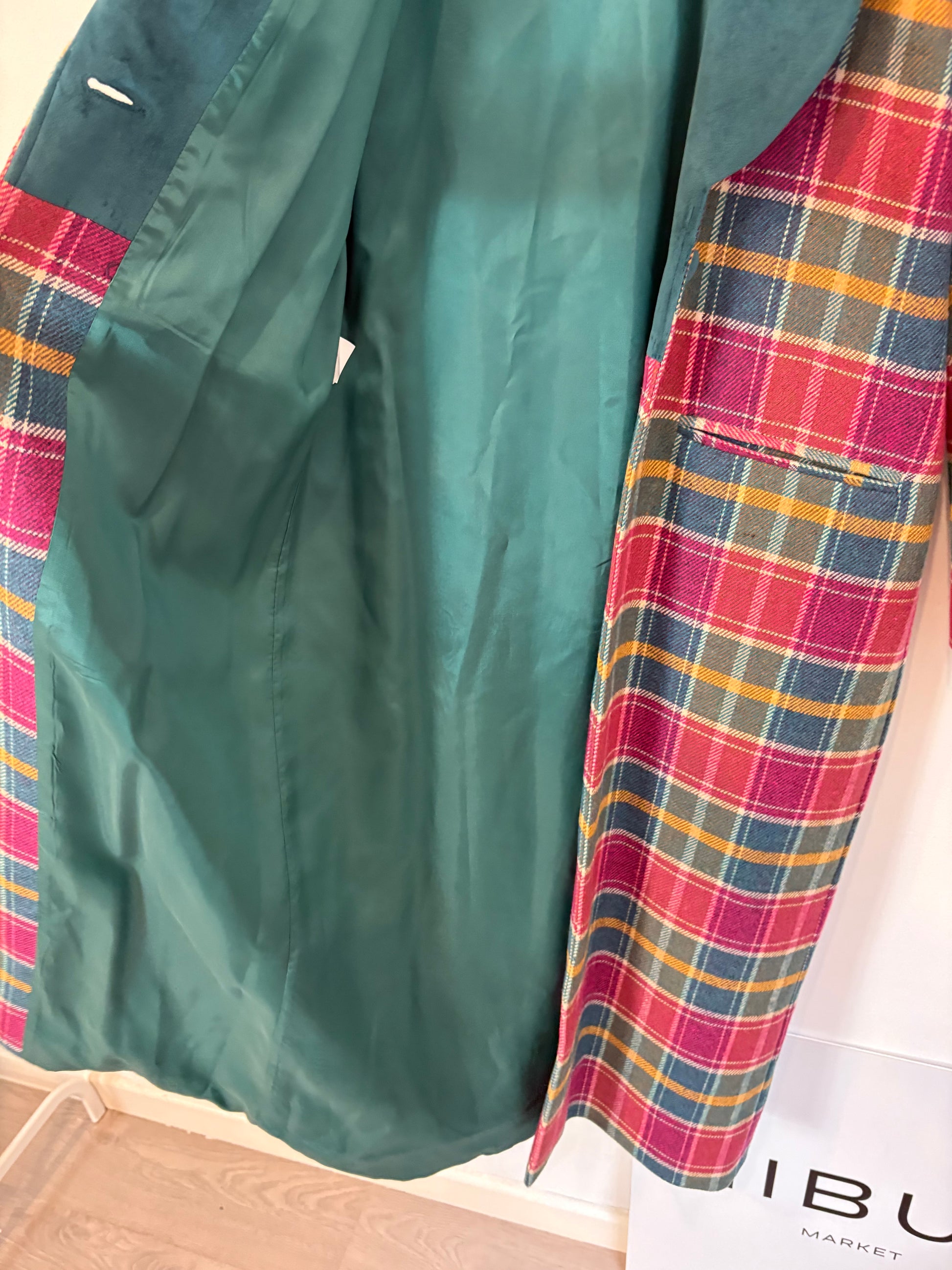 MAQUIS & CO. Abrigo largo cuadros solapa terciopelo