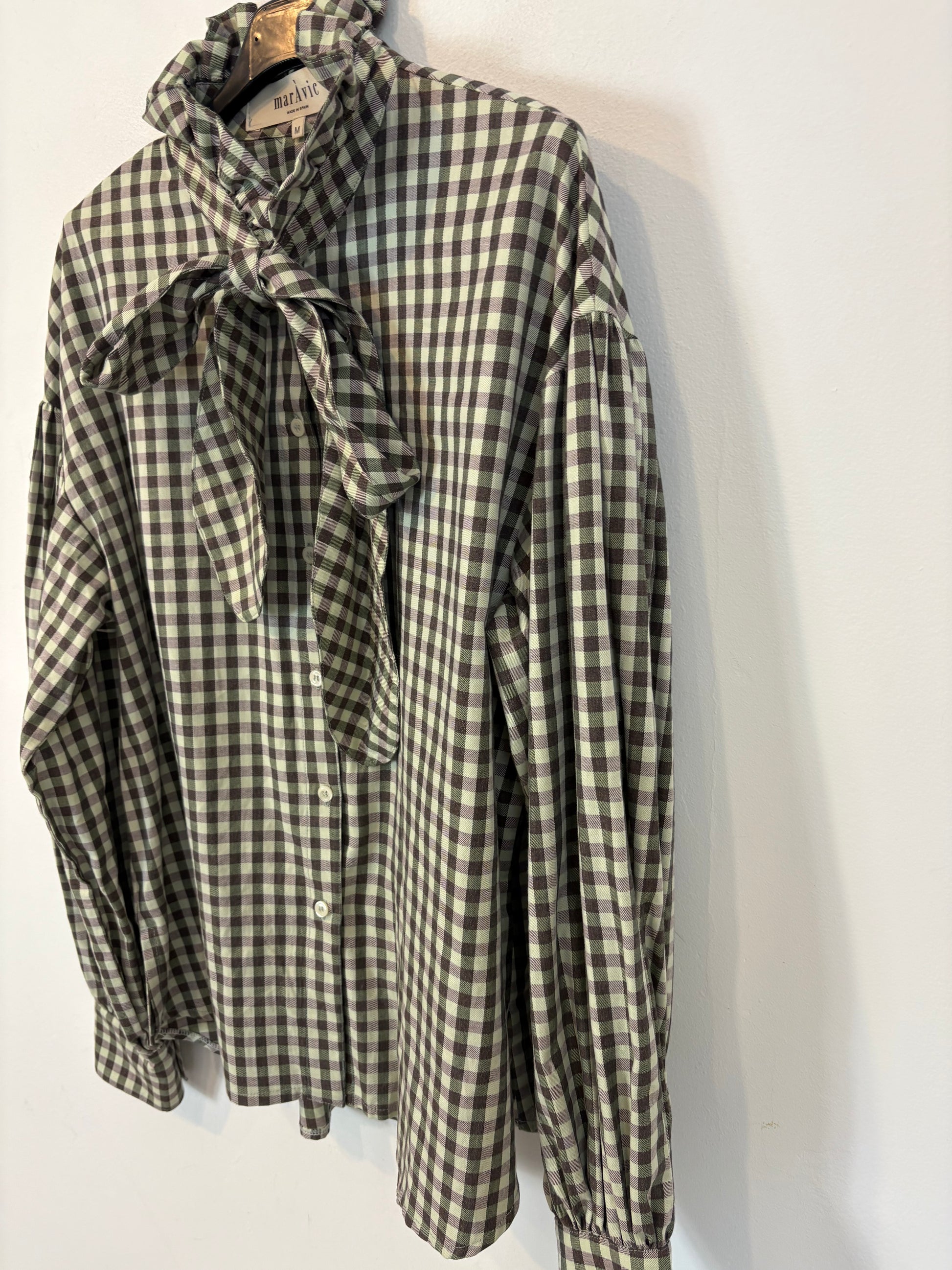 MARÁVIC. Camisa cuadros tonos verdes y rosas