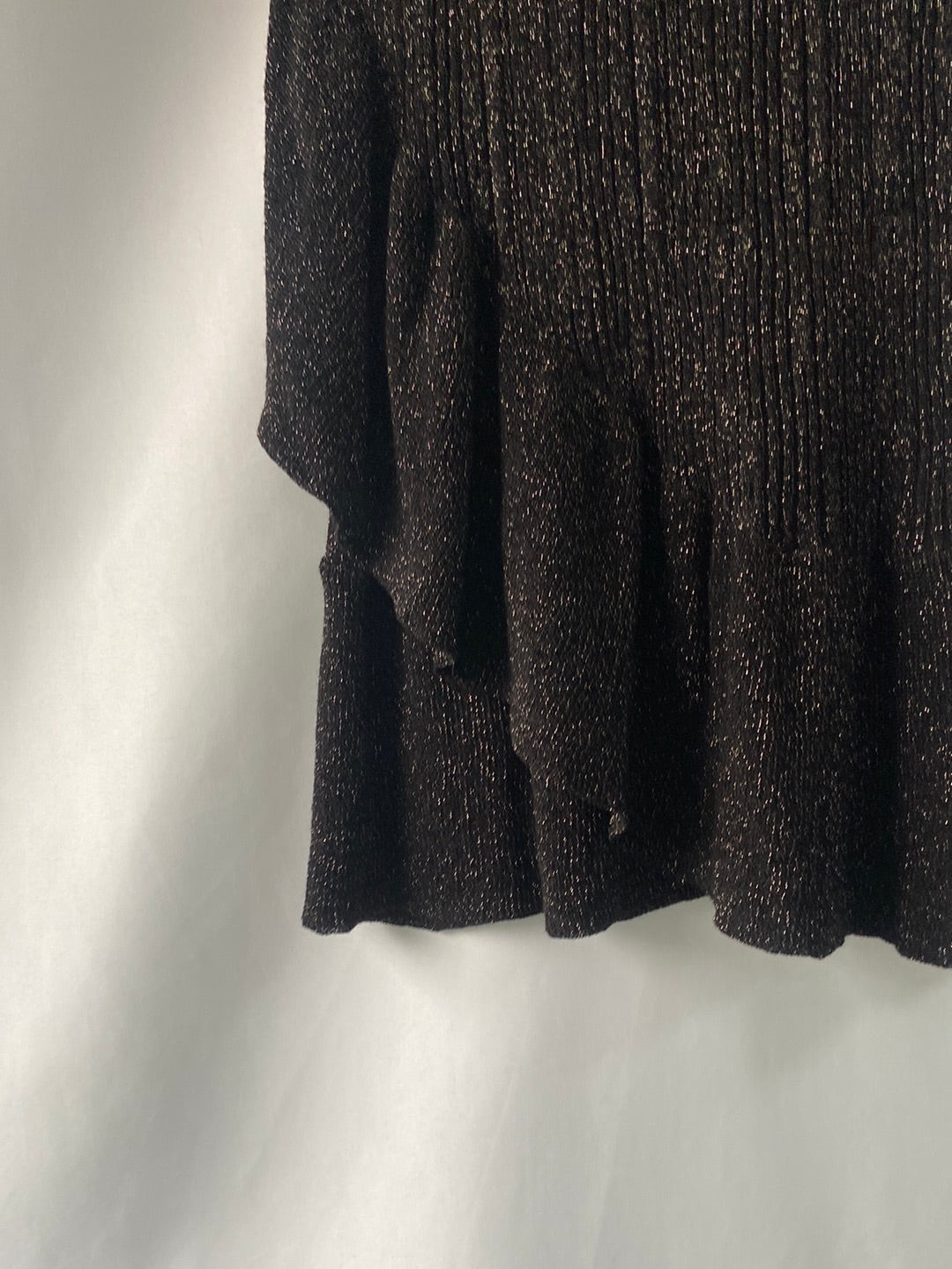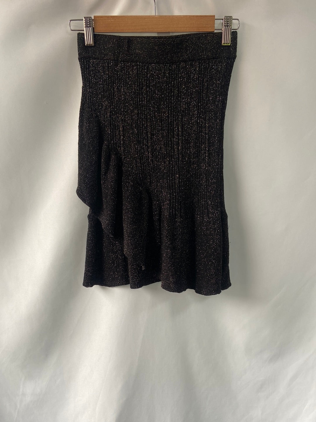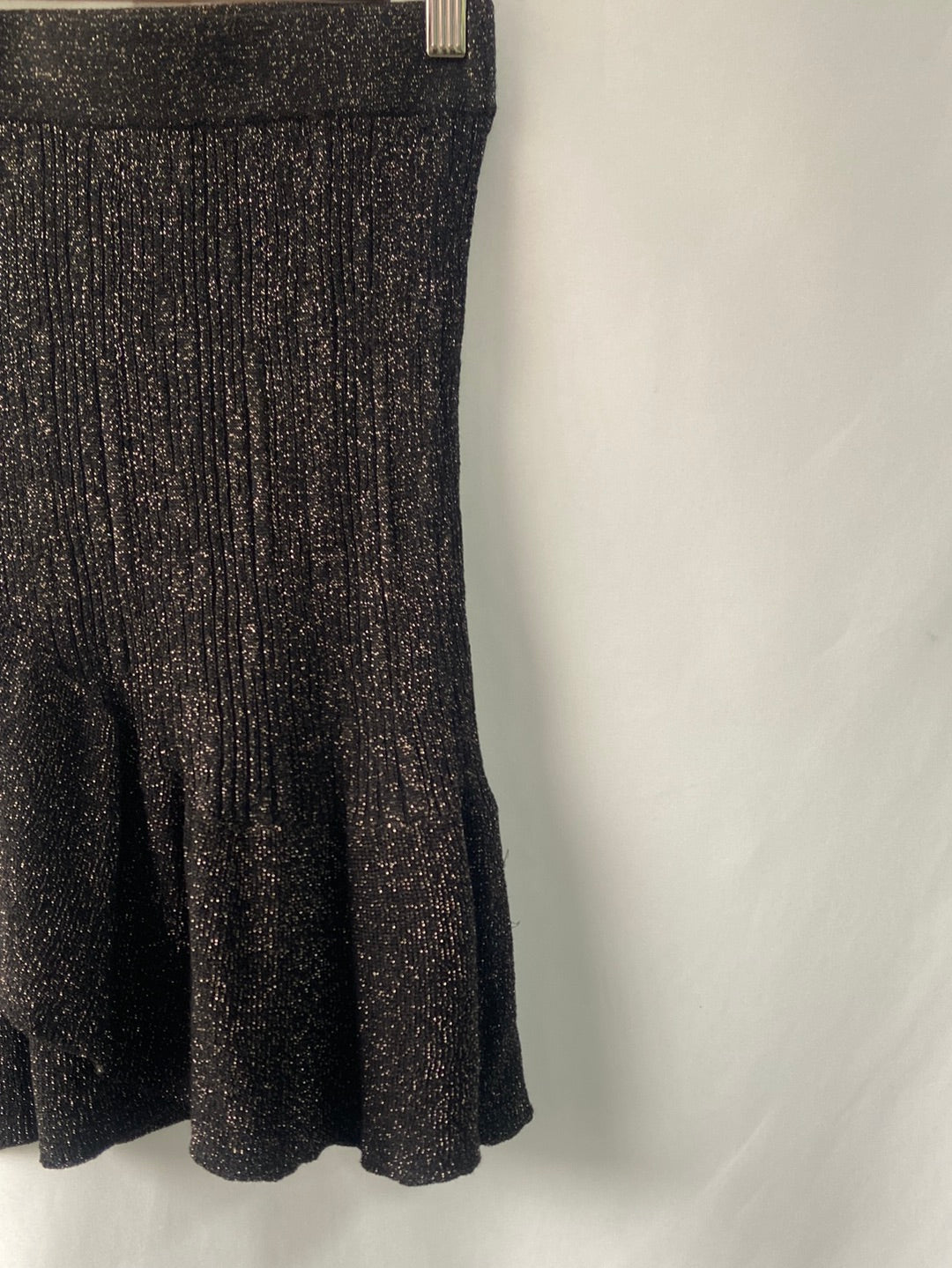 Falda corta punto negra con detalle de hilos dorados. Total look jersey. Largo 50 cm