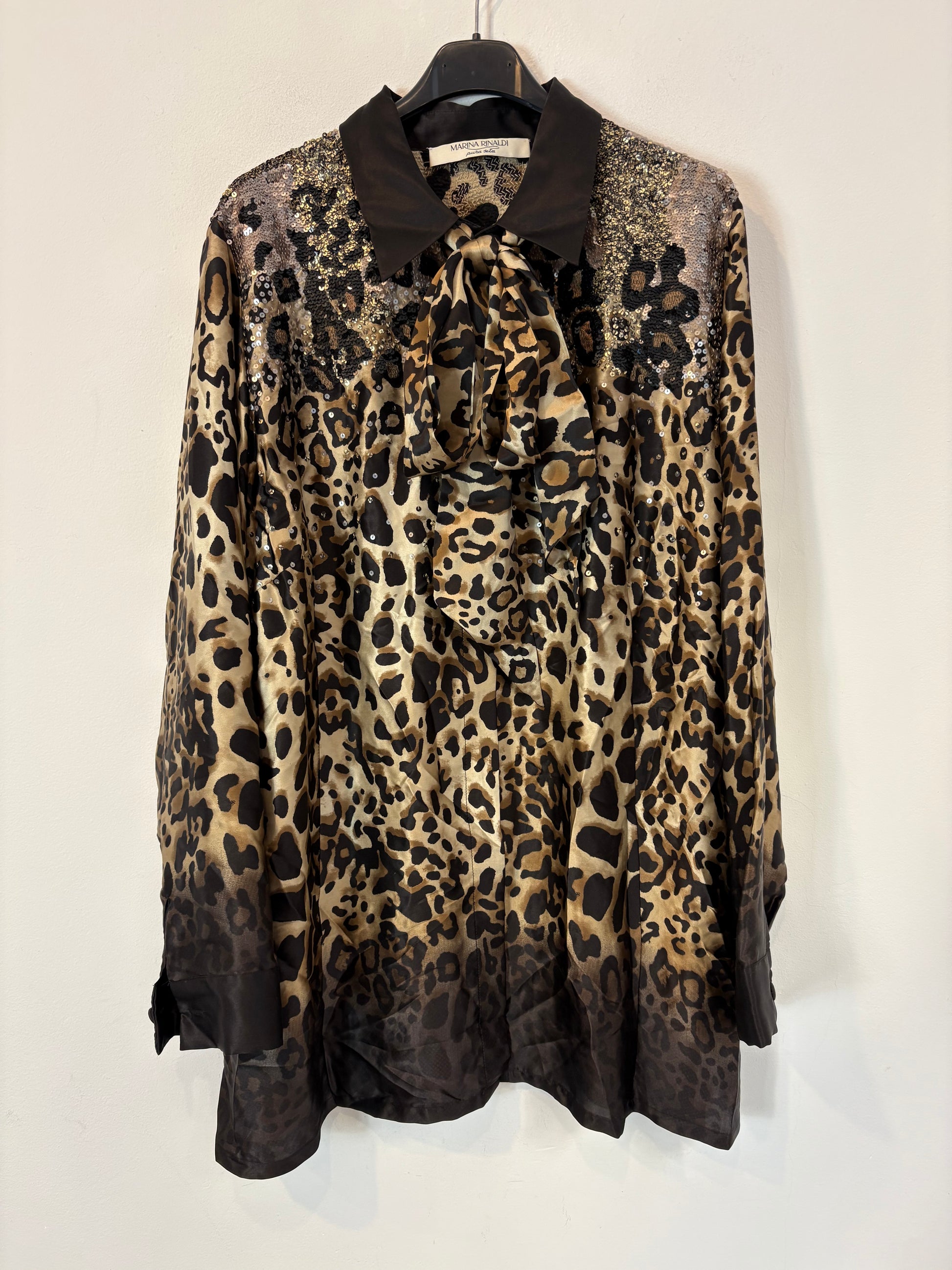 MARINA RINALDI. Blusa seda animal print lentejuelas