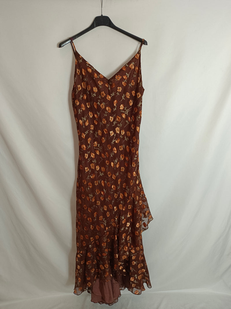 MARISA TELLECHEA. Vestido marrón flores T.42