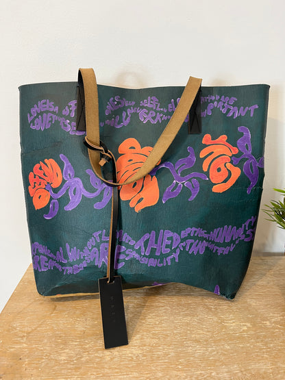 MARNI. Paper X Leather tote bag multi color