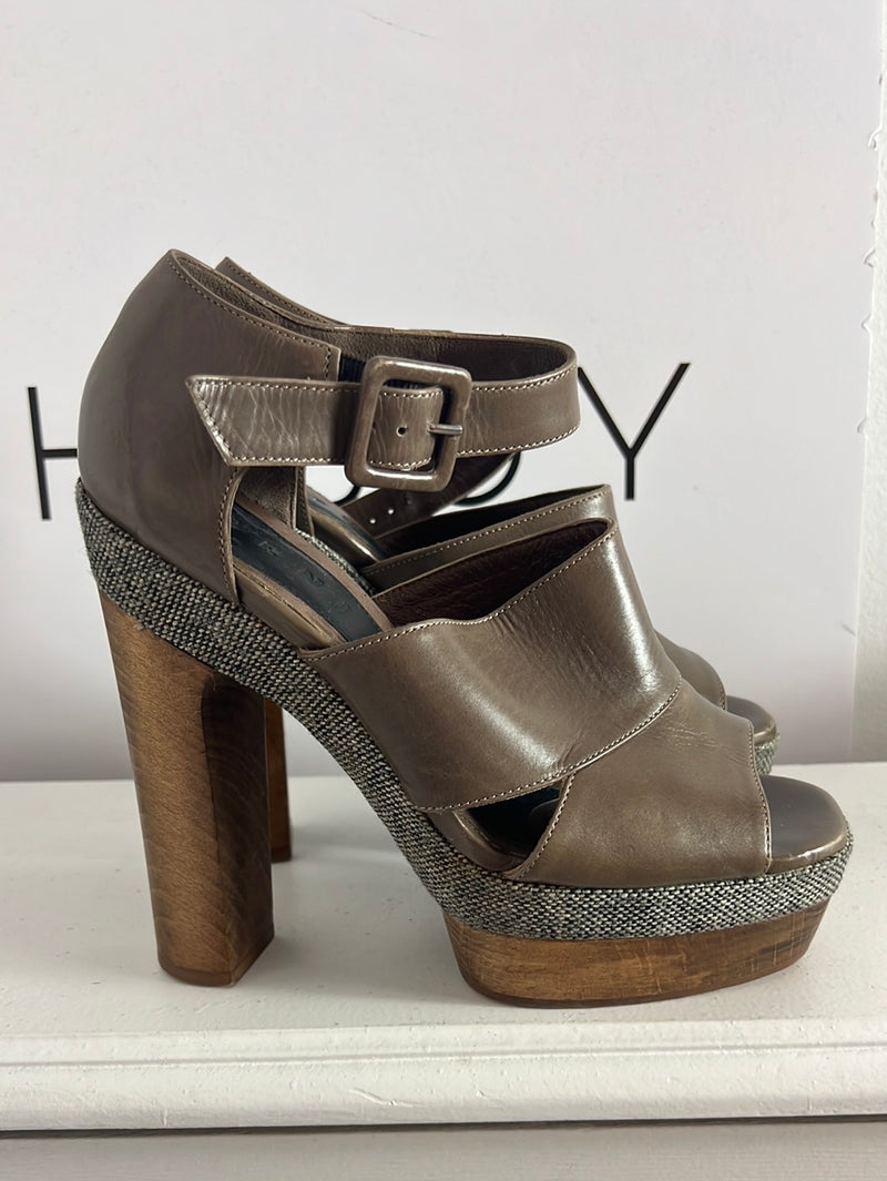 MARNI. Sandalias plataforma marrones doble textura. T 37 (TARA)