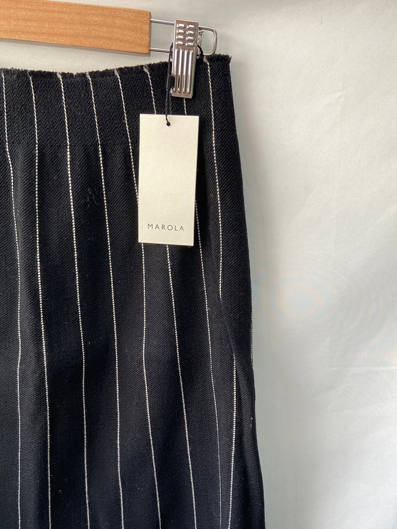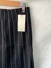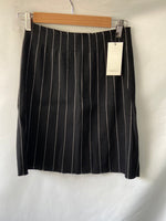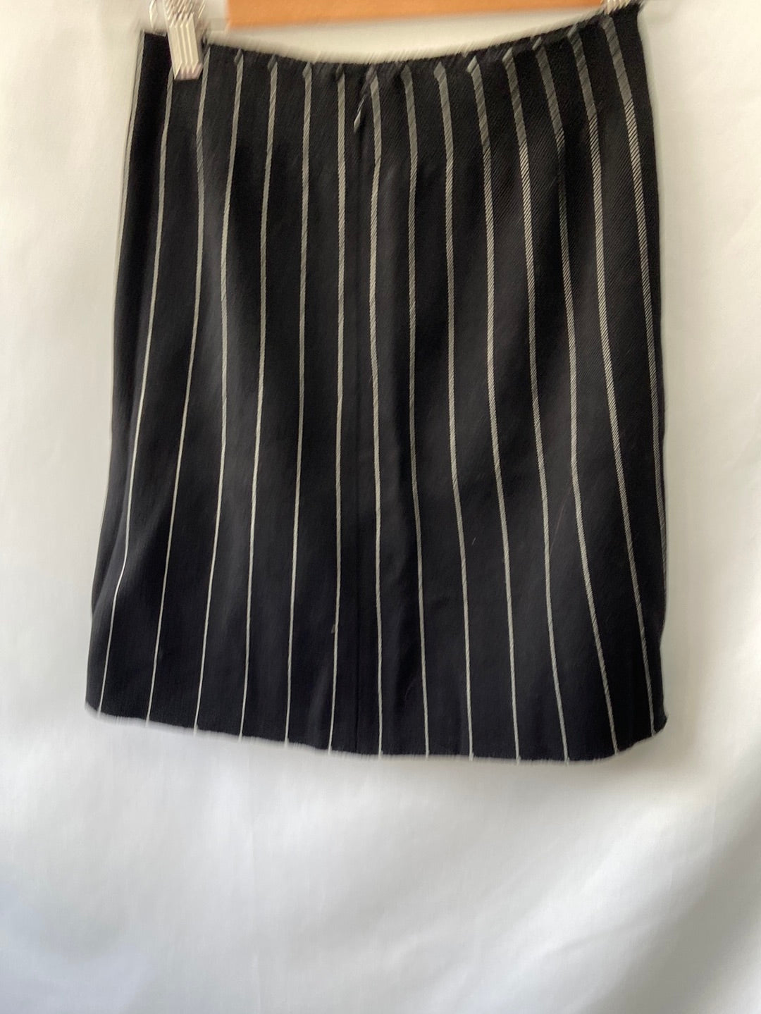Falda negra con rayas blancas. Fluida y elástica. Se abrocha con cremallera lateral. Cintura 34 cm largo 48 cm