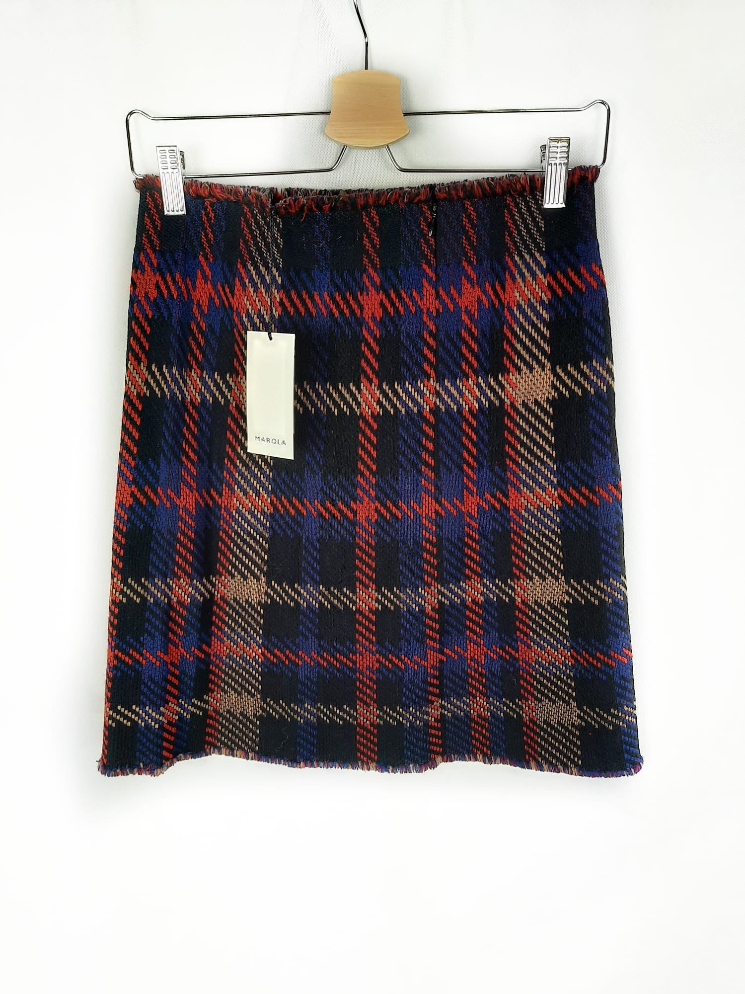 NUEVA CON ETIQUETA. Falda corta de cuadros es elástica y se abrocha con cremallera trasera. Cintura 34 largo 48 cm