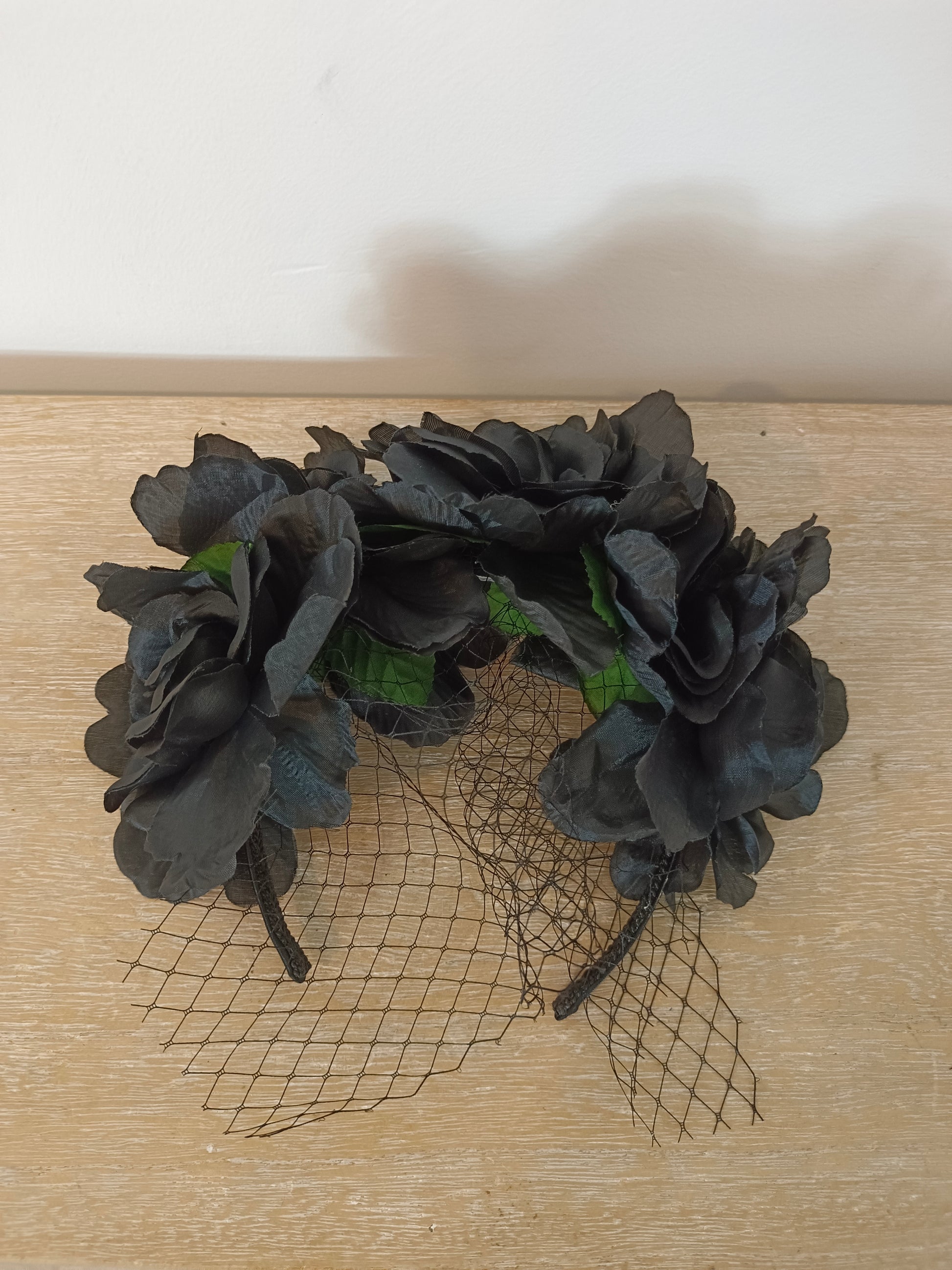 Tocado de diadema con flores y rejilla