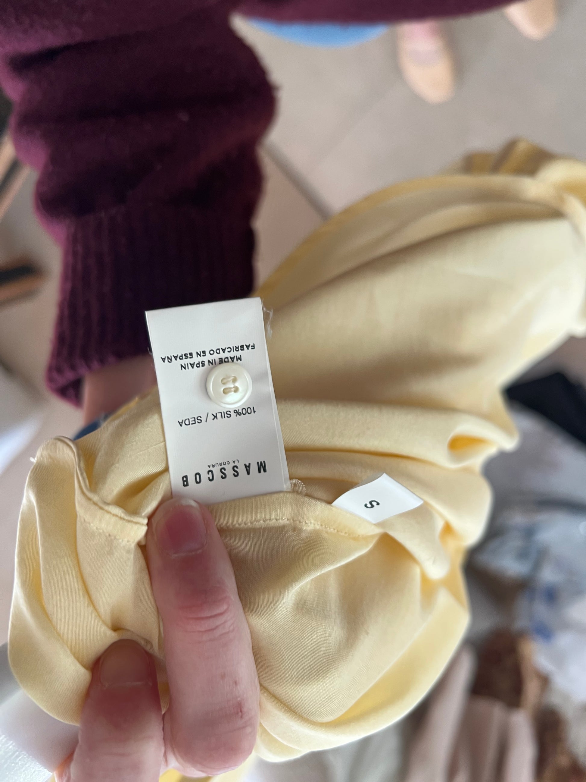 MASSCOB. Blusa amarilla seda T.s