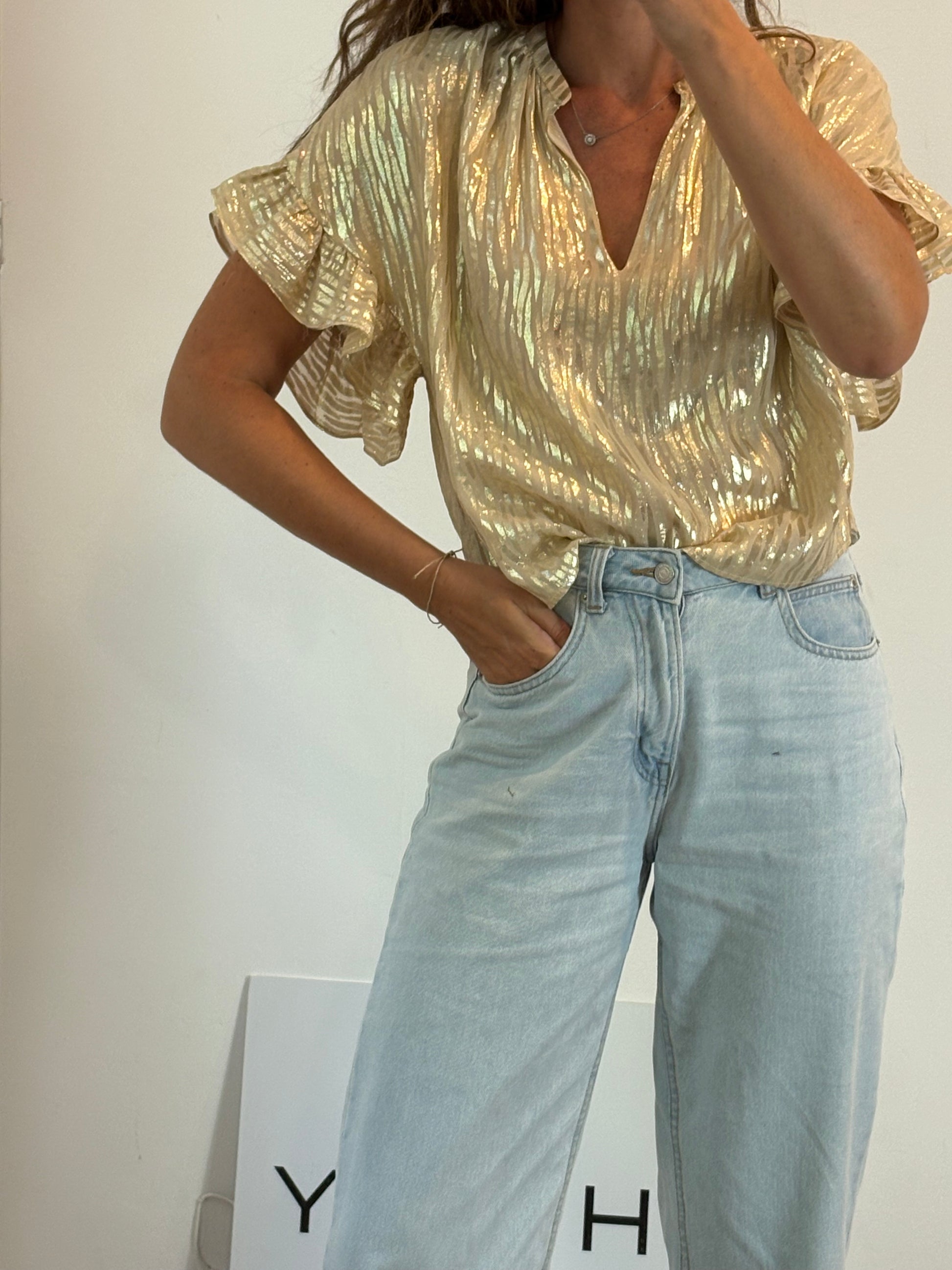 MASSCOB. Blusa seda dorada. XS
