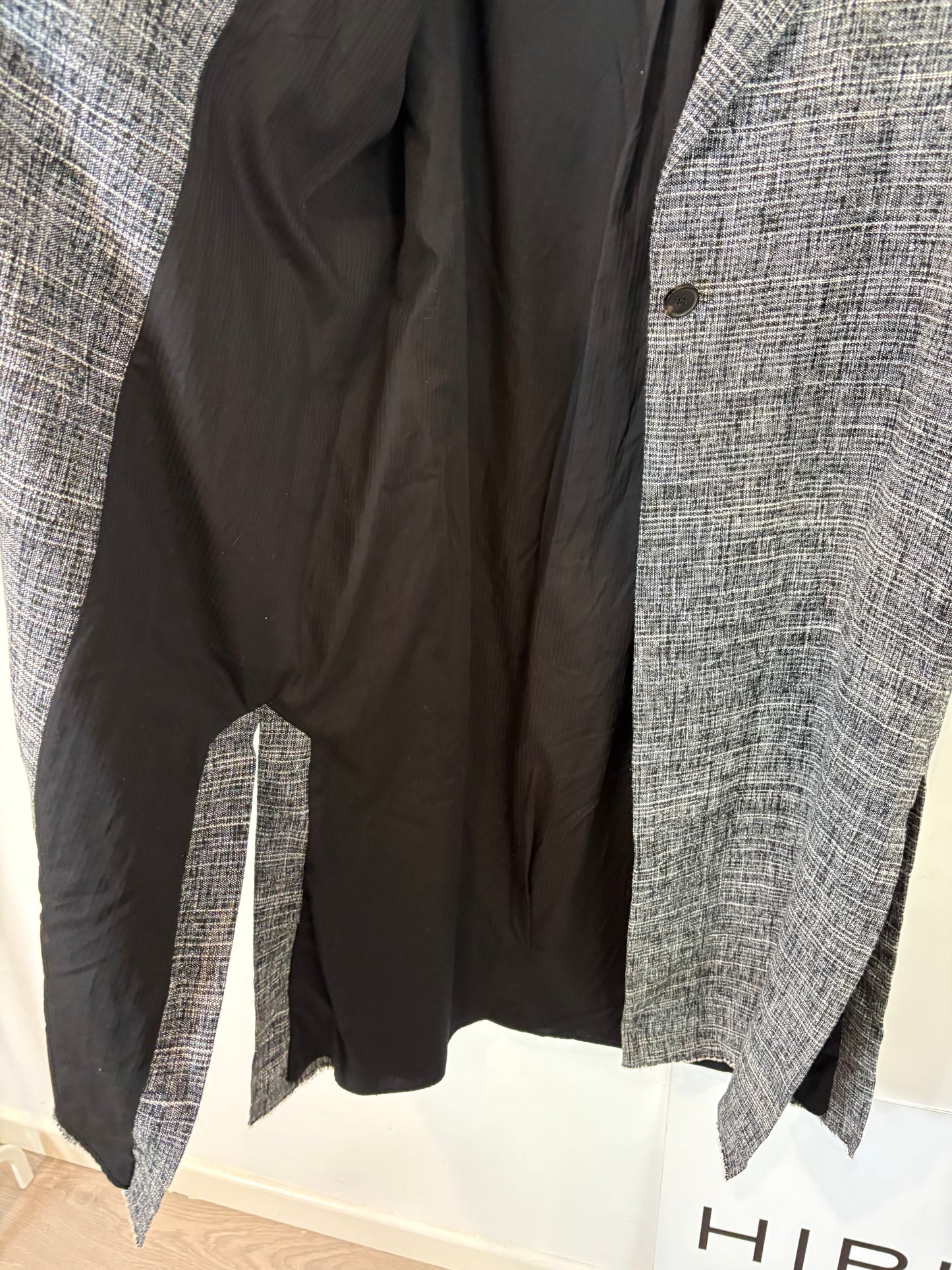 Chaqueta larga grIs aberturas 100% algodón. Hombros cm ,espalda cm, , largo cm