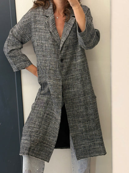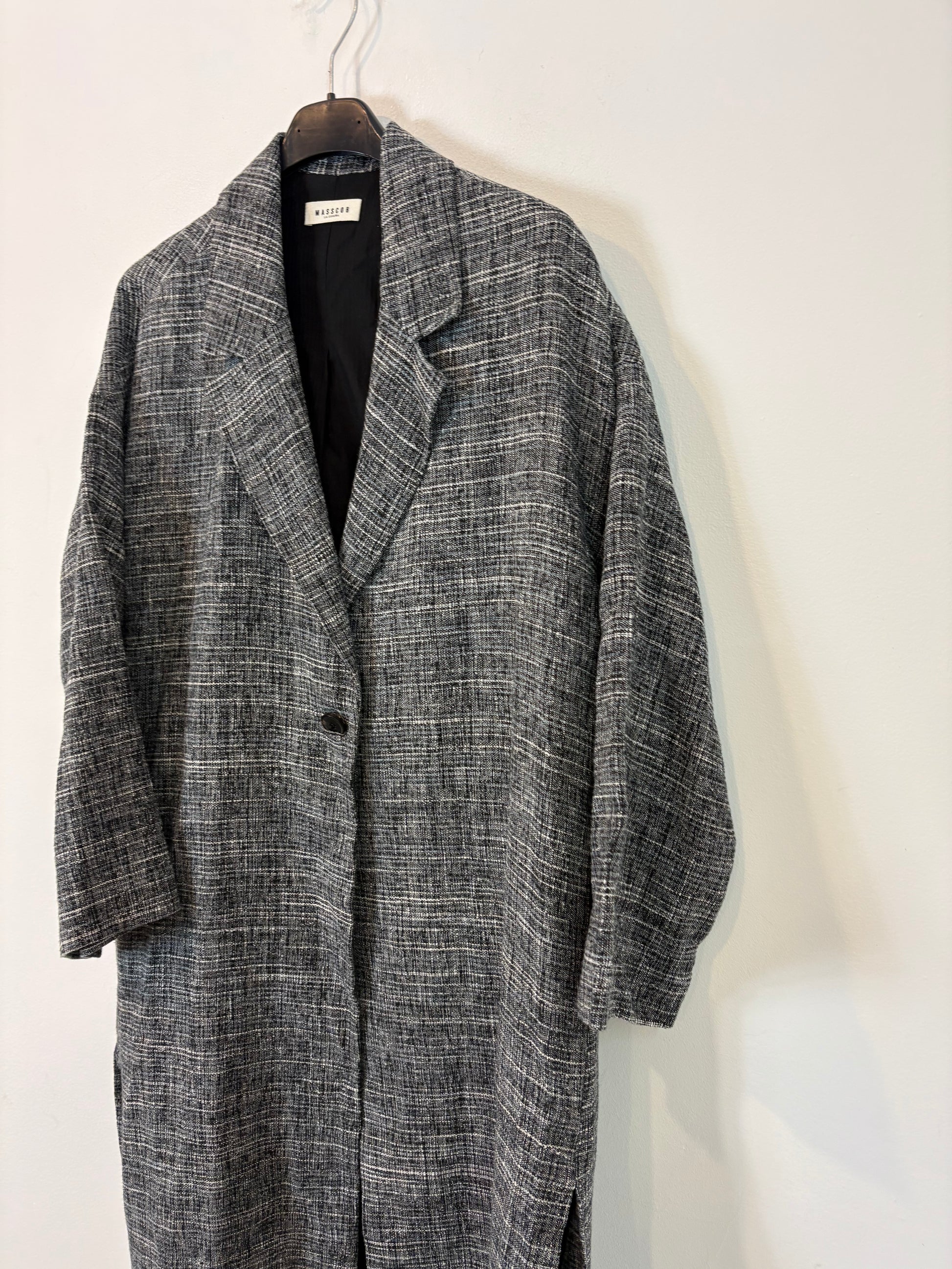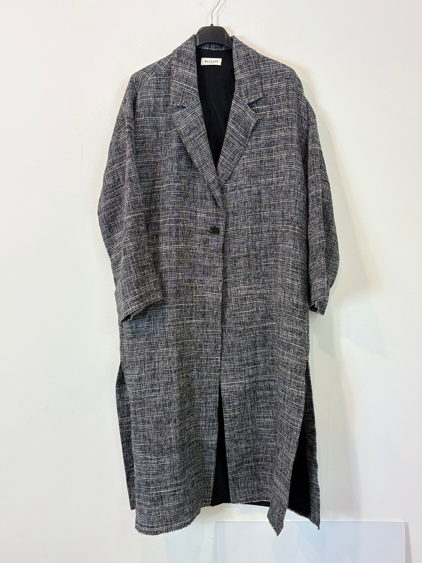 MASSCOB. Chaqueta larga entretiempo gris jaspeada. T 34 (S/M)