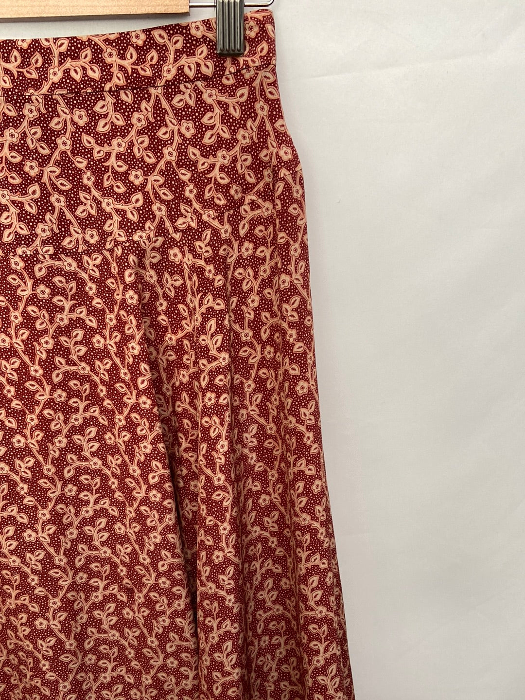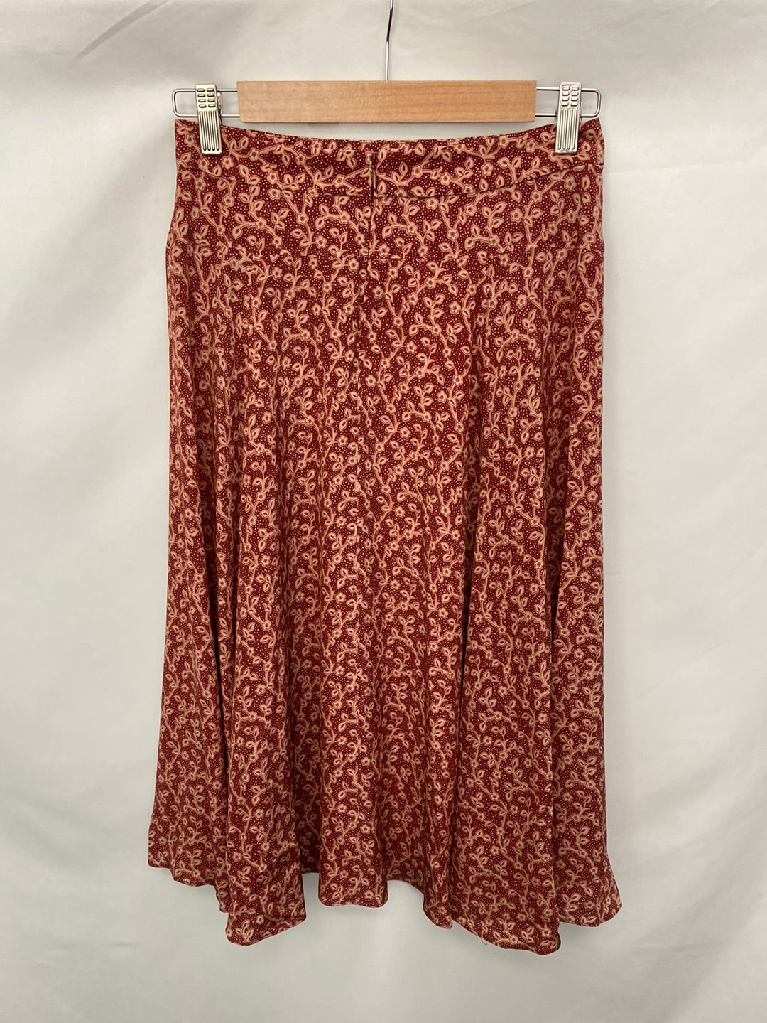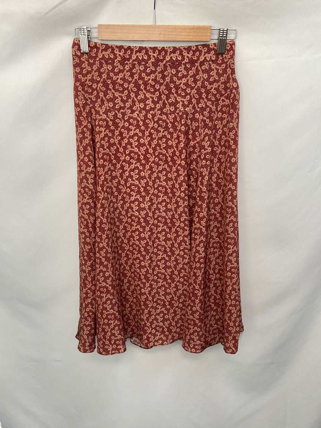 Falda midi fluida con florecitas en tono beige. no elástica. Cremallera trasera. Cintura 36 cm largo 68 cm