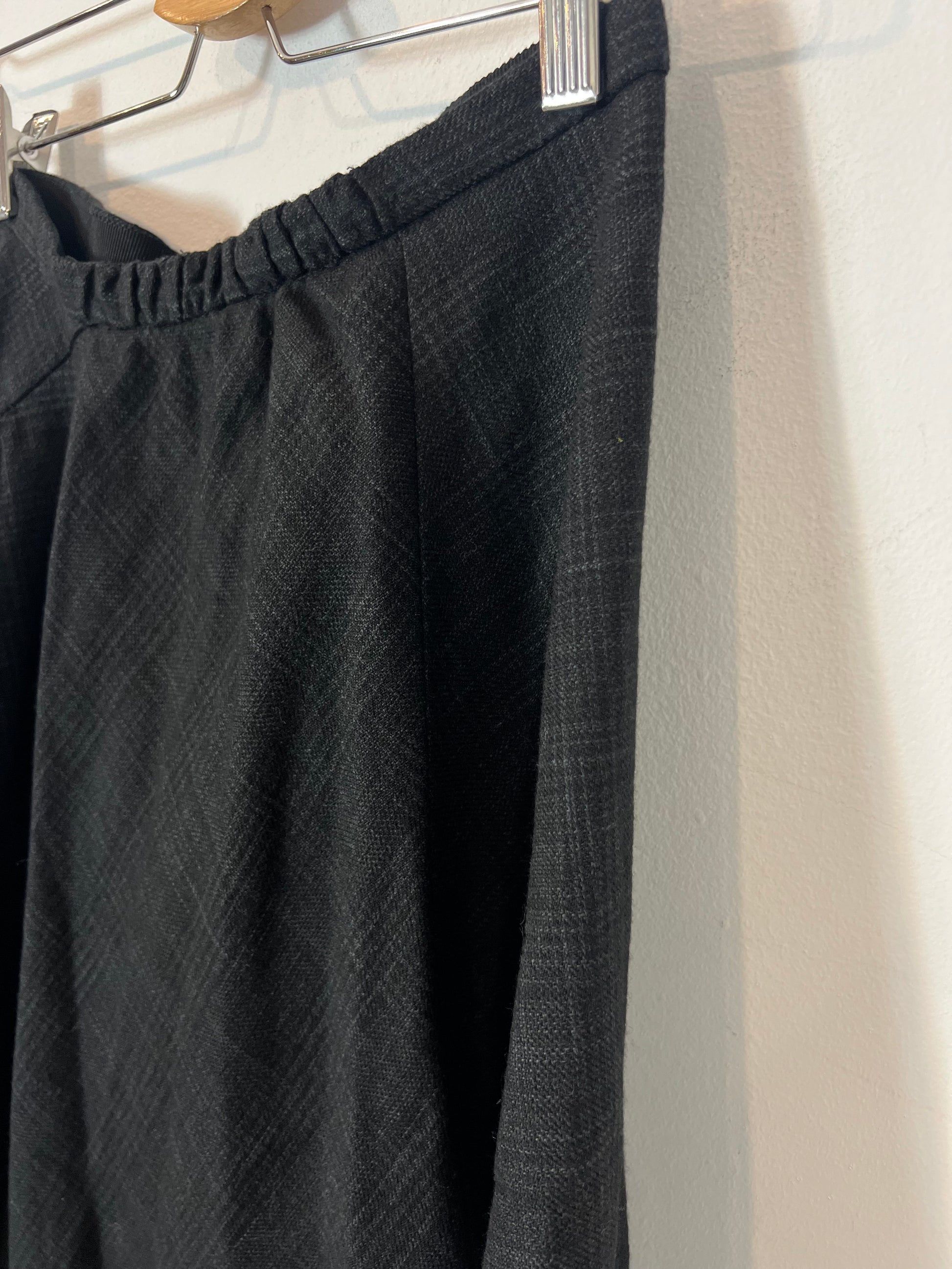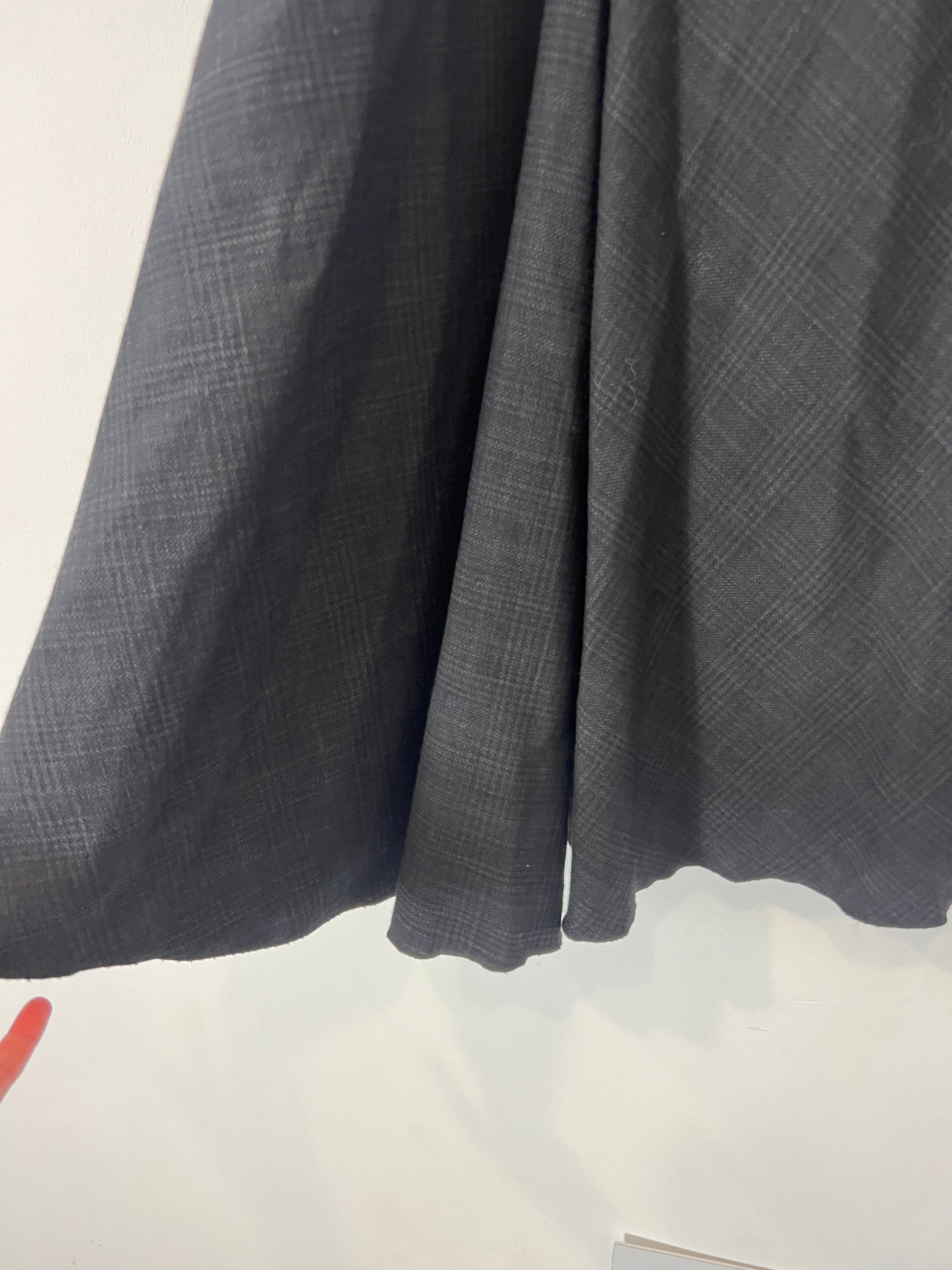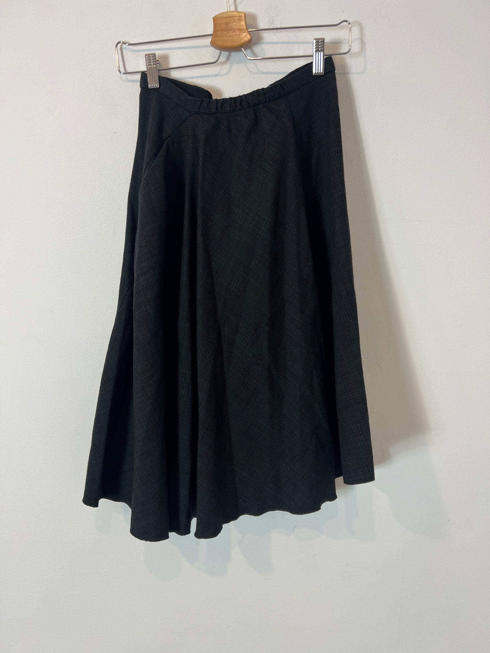 Falda fluida gros oscuro con cuadros grises detalle de largo un pelín asimétrico No elástica. Lana y algodón Cintura 34 cm largo 74 cm