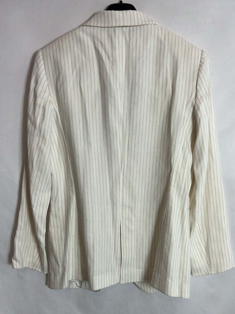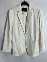 MASSIMO DUTTI. Blazer efecto lino blanca rayas. T 36