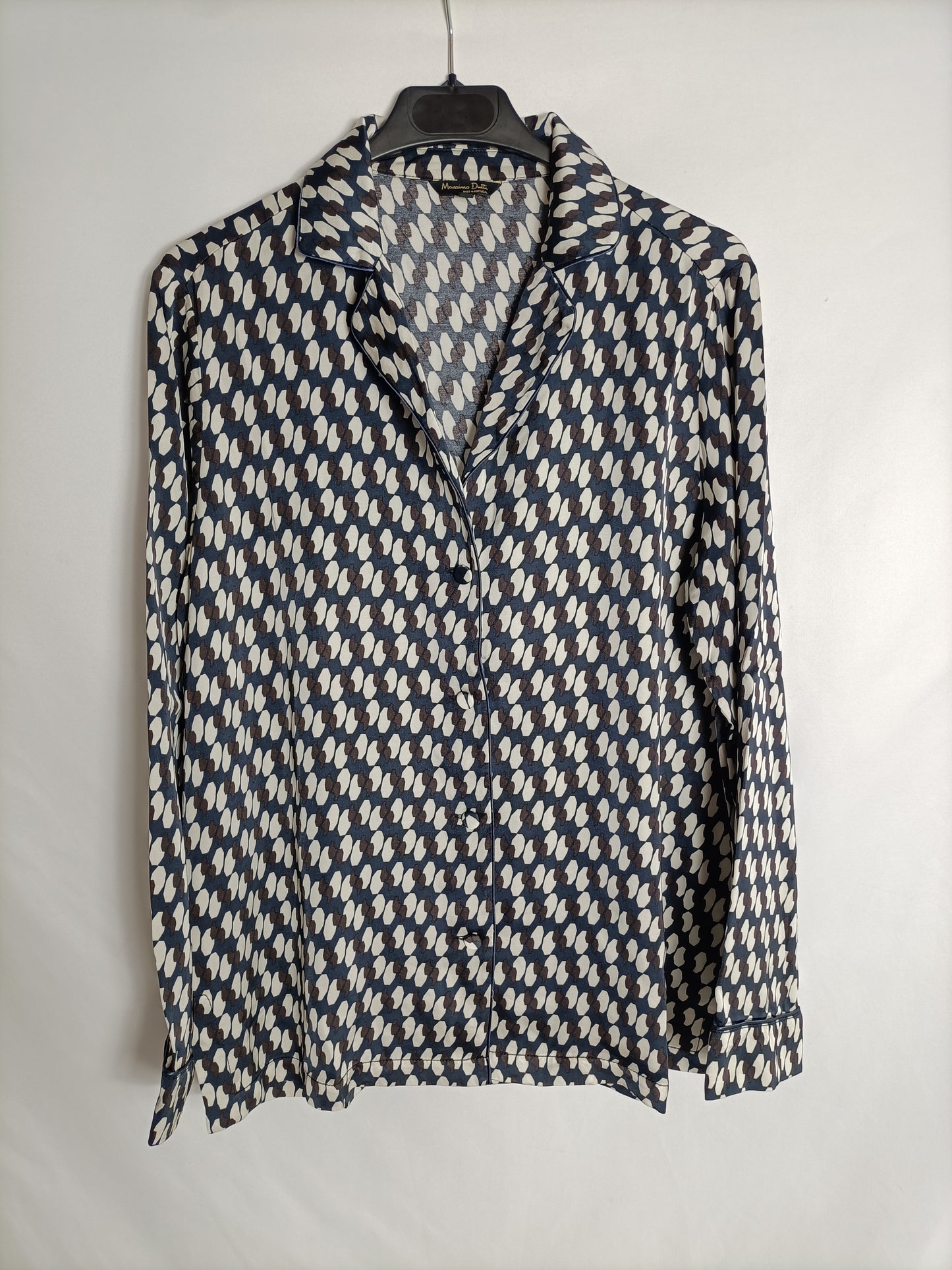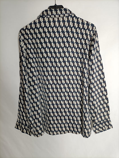 MASSIMO DUTTI. Blusa azul estampada T.m
