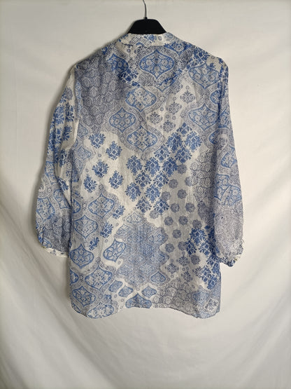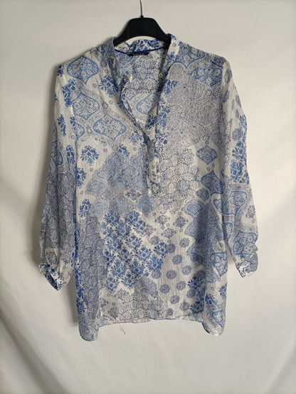 MASSIMO DUTTI. Blusa blanca amebas T.38