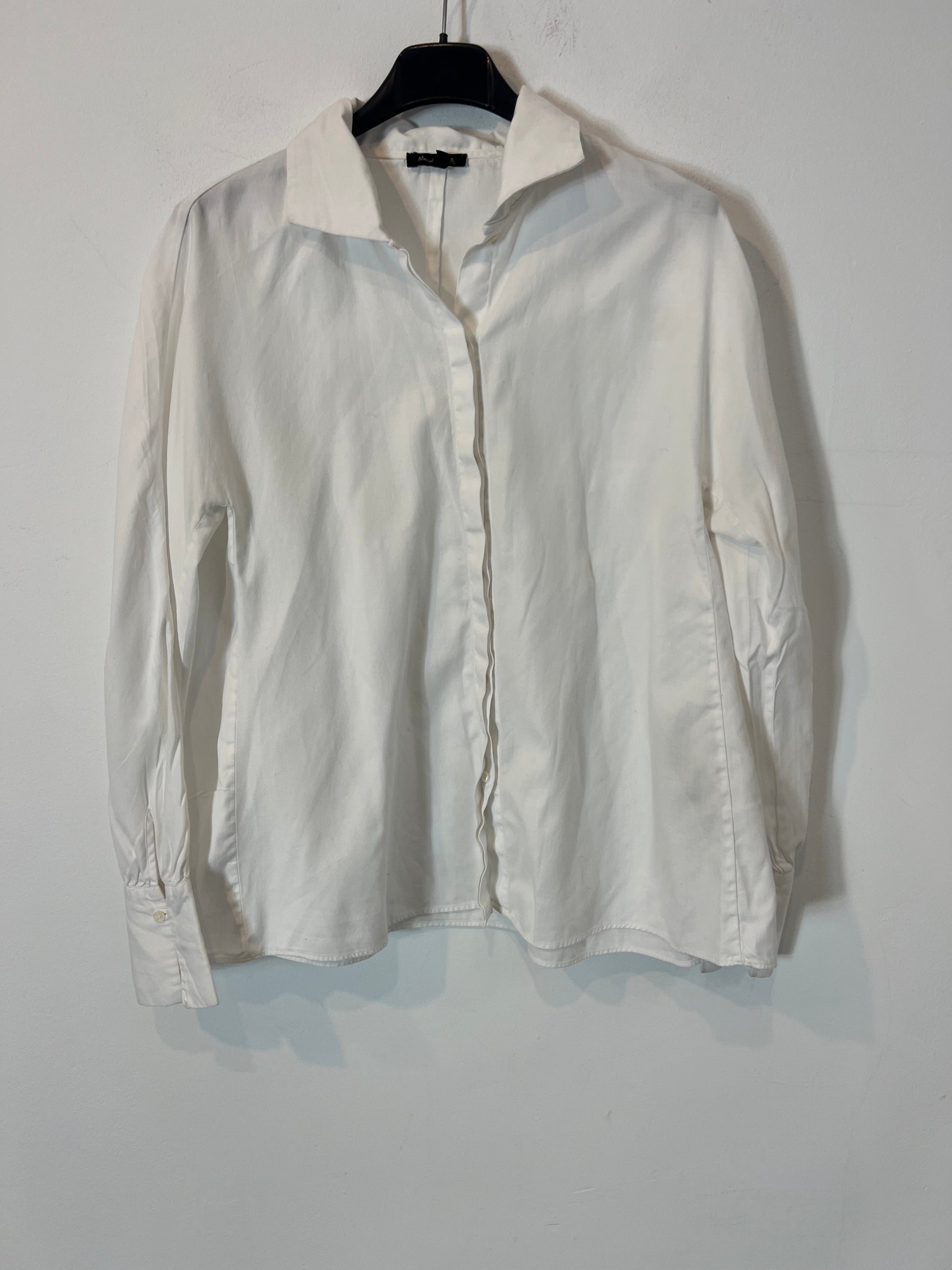 MASSIMO DUTTI. Blusa blanca doble textura. T 38