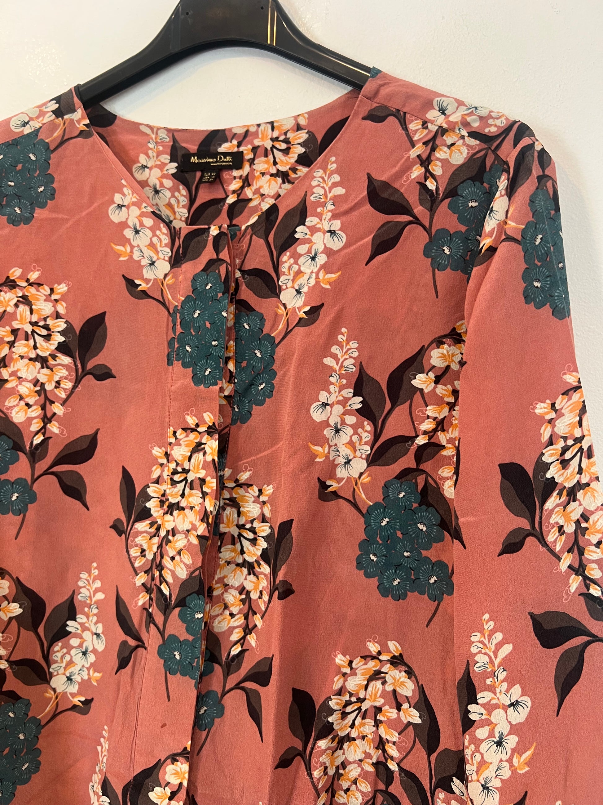 blusa fluida rosa estampado flores. No elástica. de sisa a sisa 45 cm, largo 72 cm. Macha poco perceptible