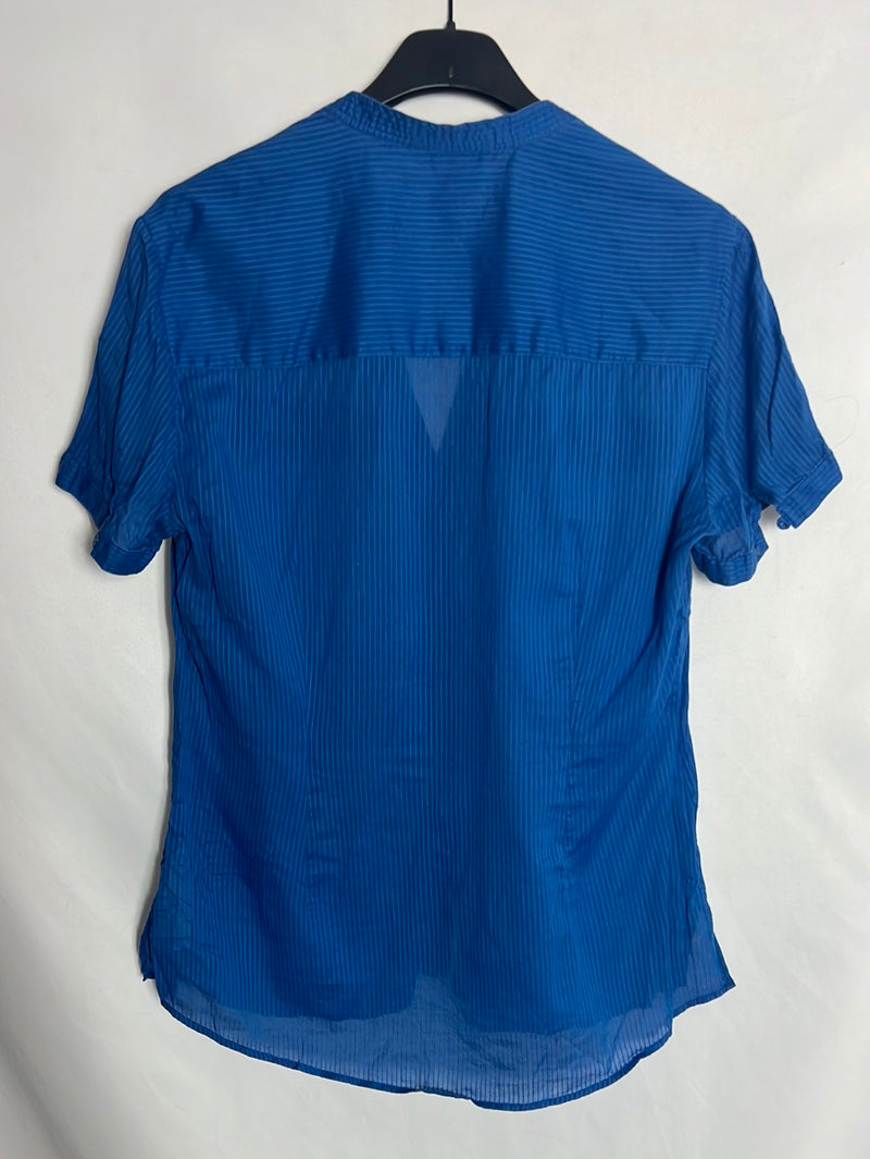 MASSIMO DUTTI. Blusa manga corta azul textuta. T 40 (S)