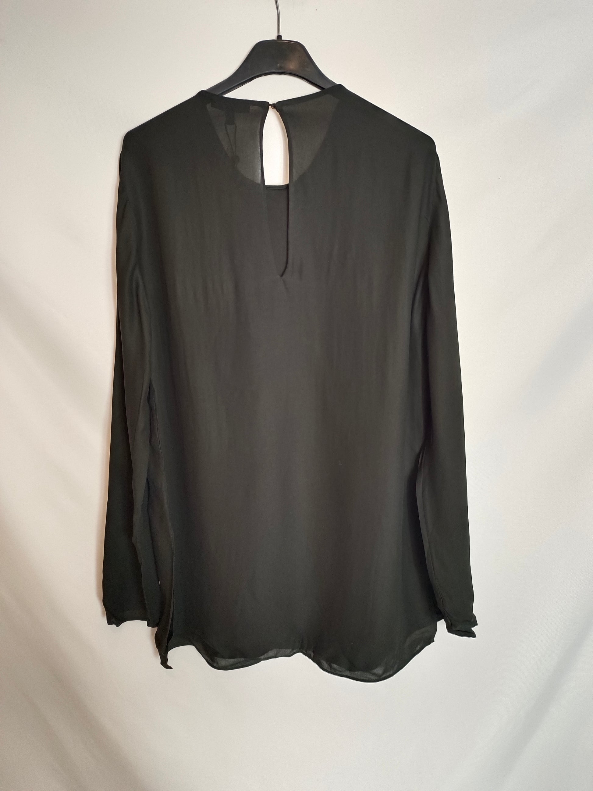 NUEVO CON ETIQUETA. Blusa negra efecto cruzado.De sisa a sisa 52 cm largo 77cm.