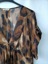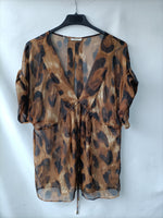 Blusa animal print fluida y semitransparente, se ajusta debajo del pecho con una cuerda