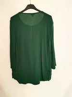 blusa verde fluida con la parte trasera elástica de tejido de camiseta.