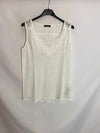 camiseta blanca de lino 100% con detalles de encaje en el escote.