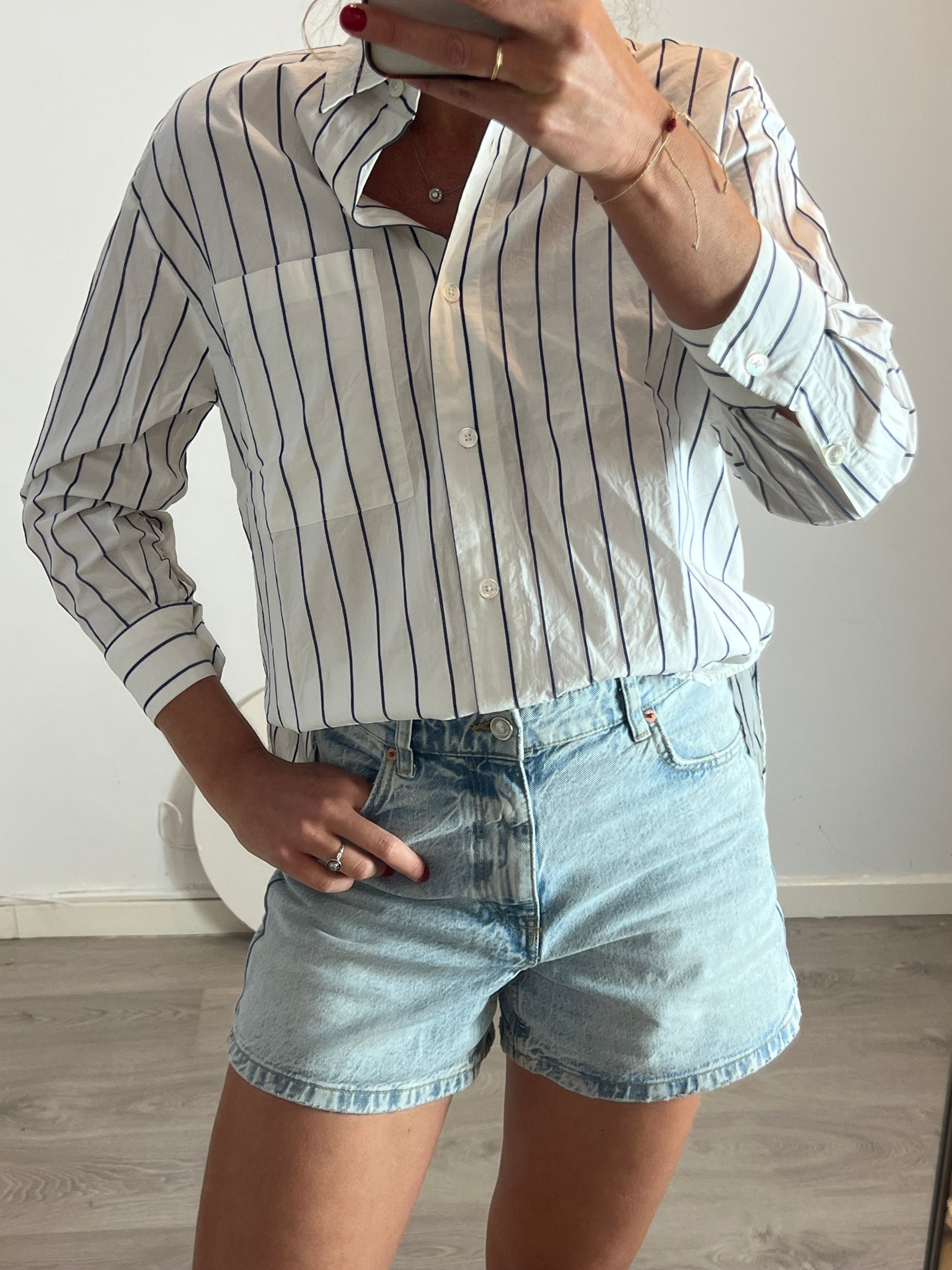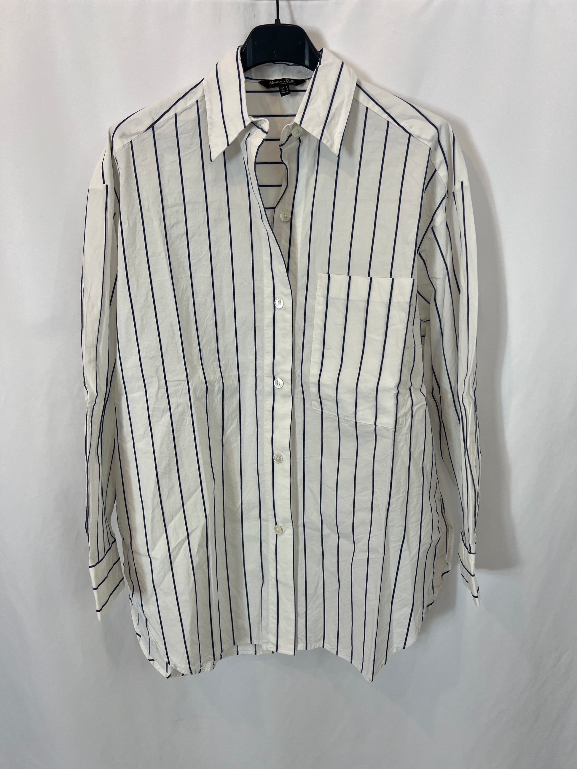 MASSIMO DUTTI. Camisa blanca rayas azules. T S