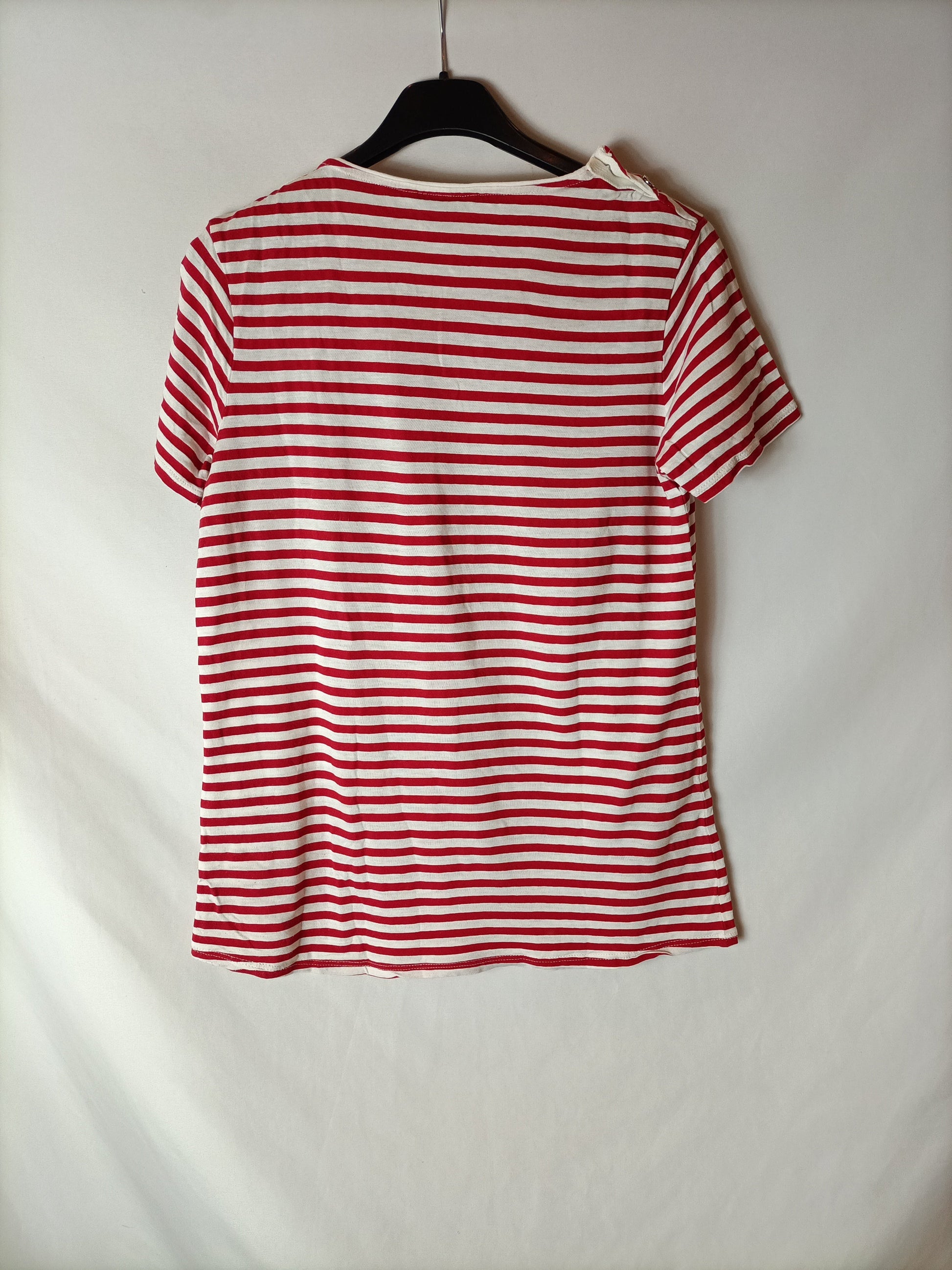 MASSIMO DUTTI. Camiseta rayas blanca y roja. T S