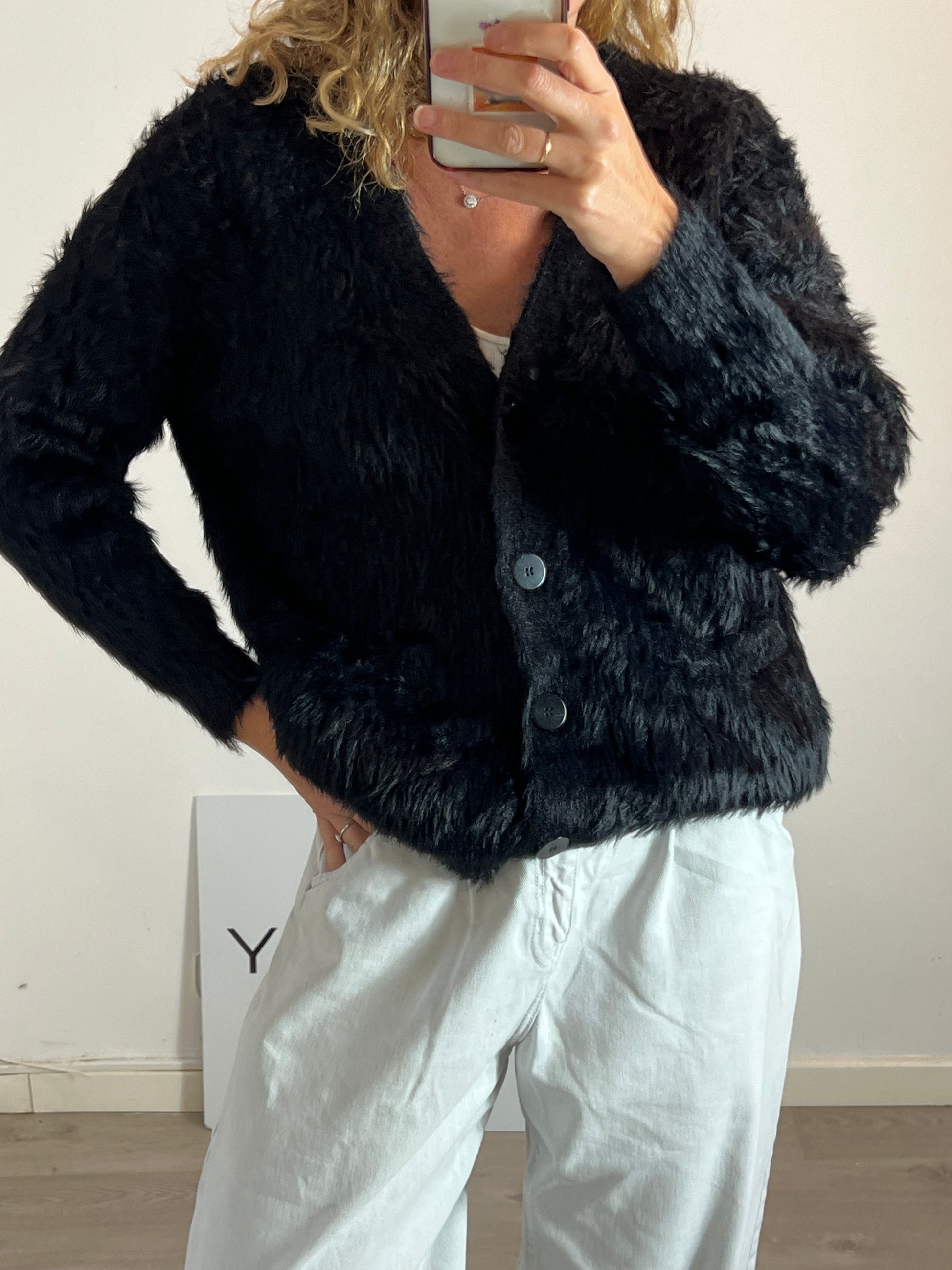 Cárdigan negro textura pelo. Talla como una M
