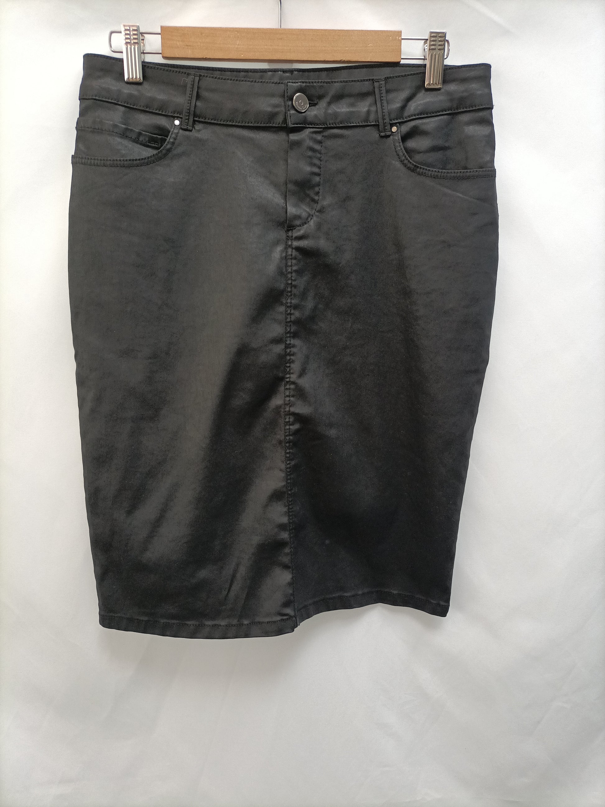 Falda negra de tejido encerado. Largo por la rodilla. Semielastica. Cintura 42 cm largo 58 cm