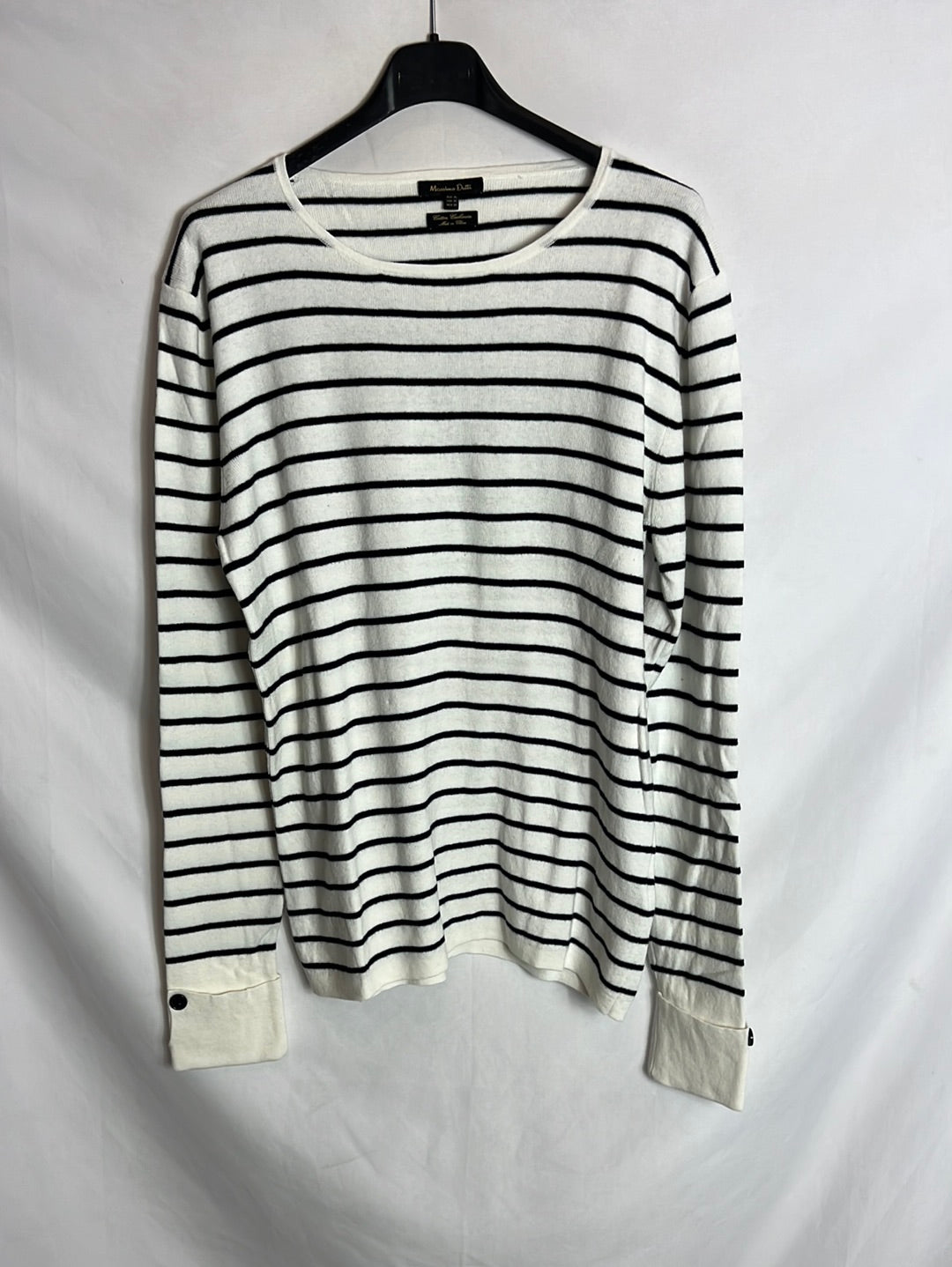 MASSIMO DUTTI. Jersey blanco rayas mezcla. T XL
