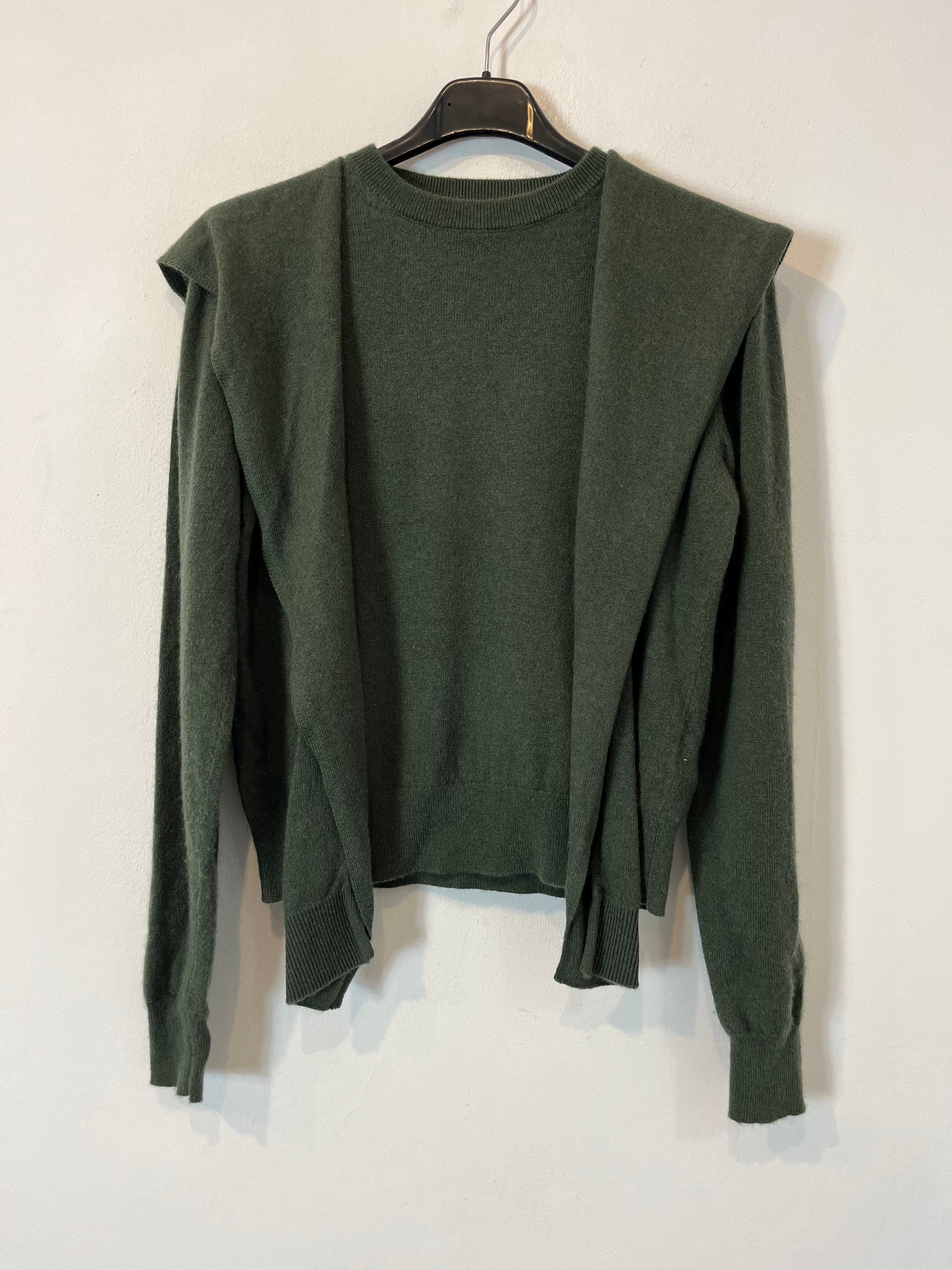 MASSIMO DUTTI. Jersey verde lana detalle cuello. T S