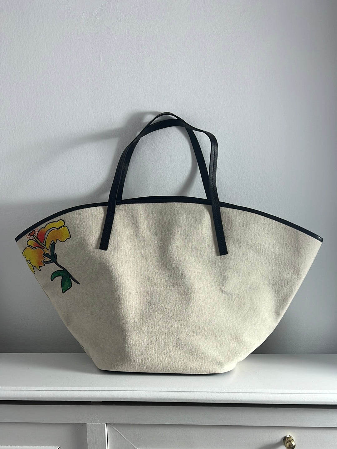 MASSIMO DUTTI. Maxi bolso beige detalle flor