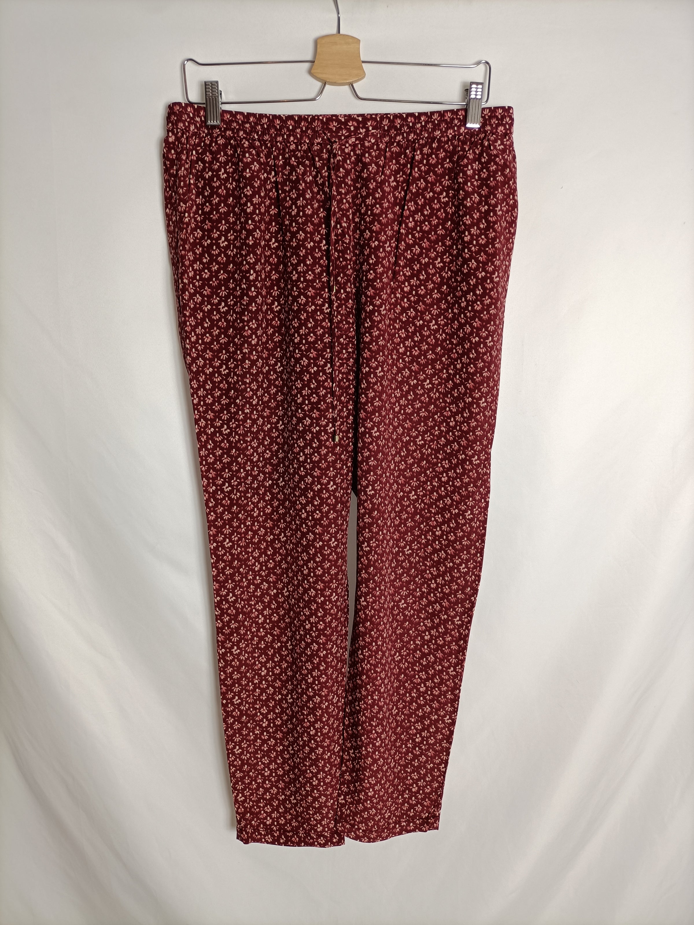 MASSIMO DUTTI. Pantalón burdeos fluido T.40