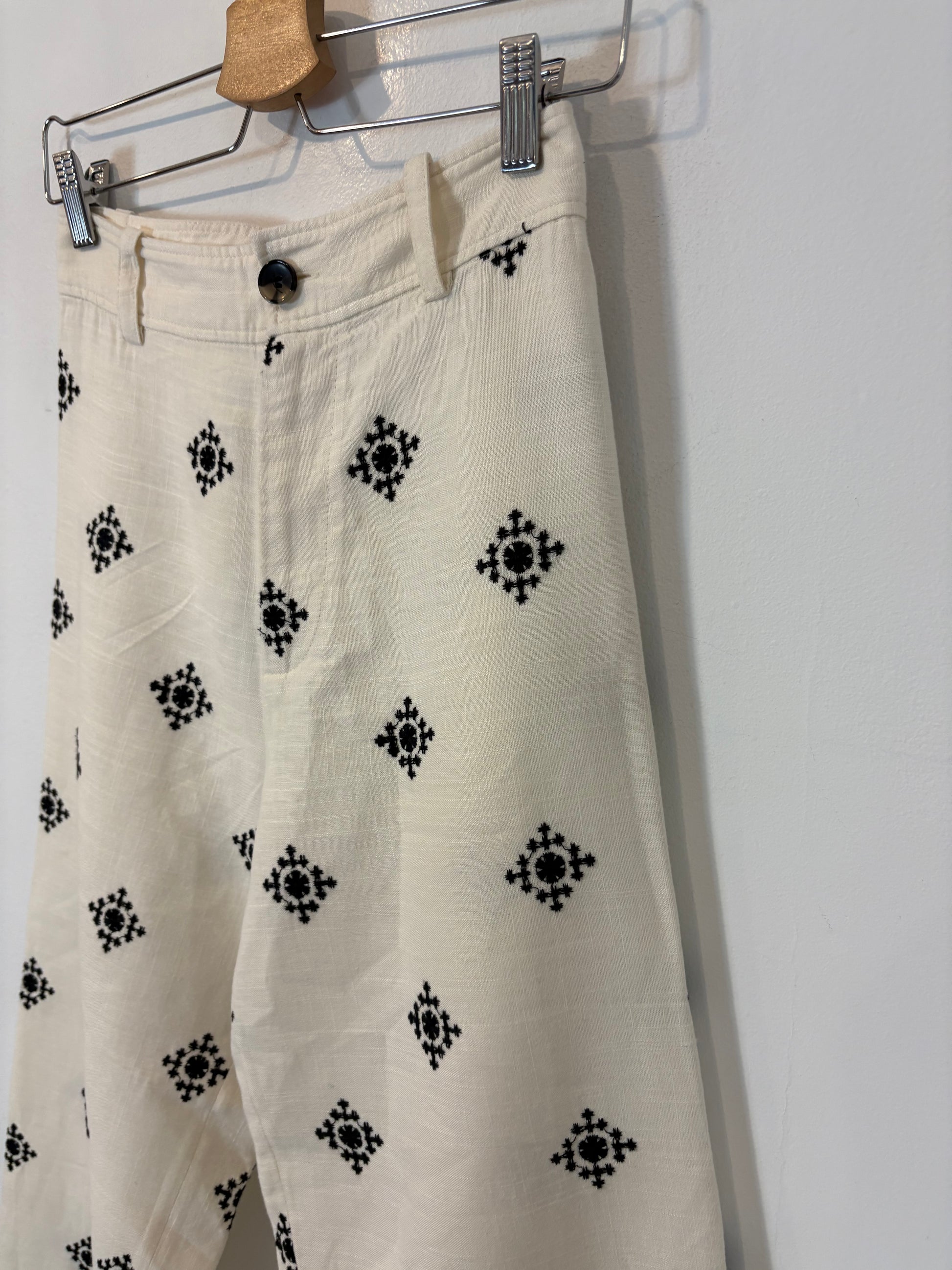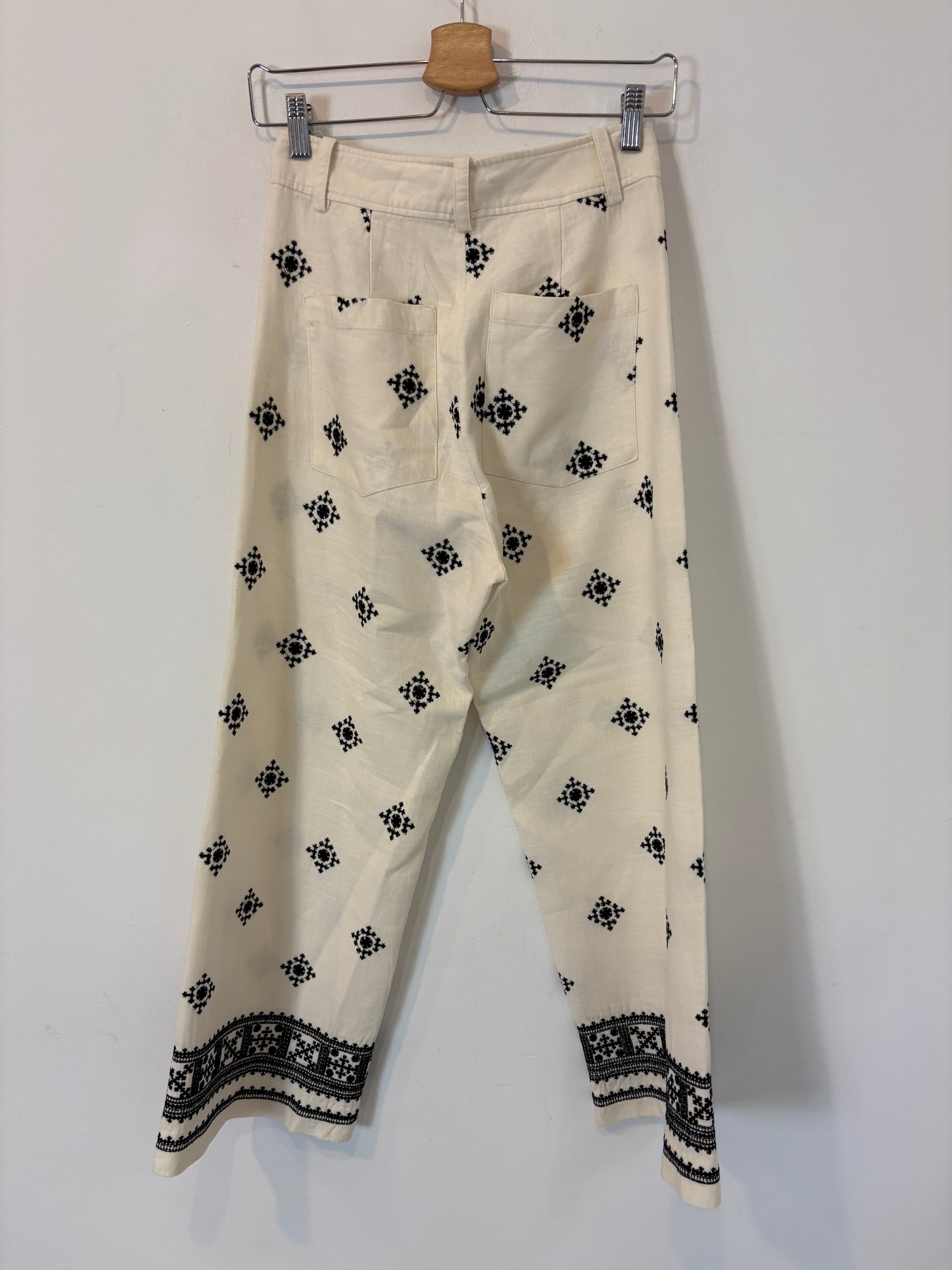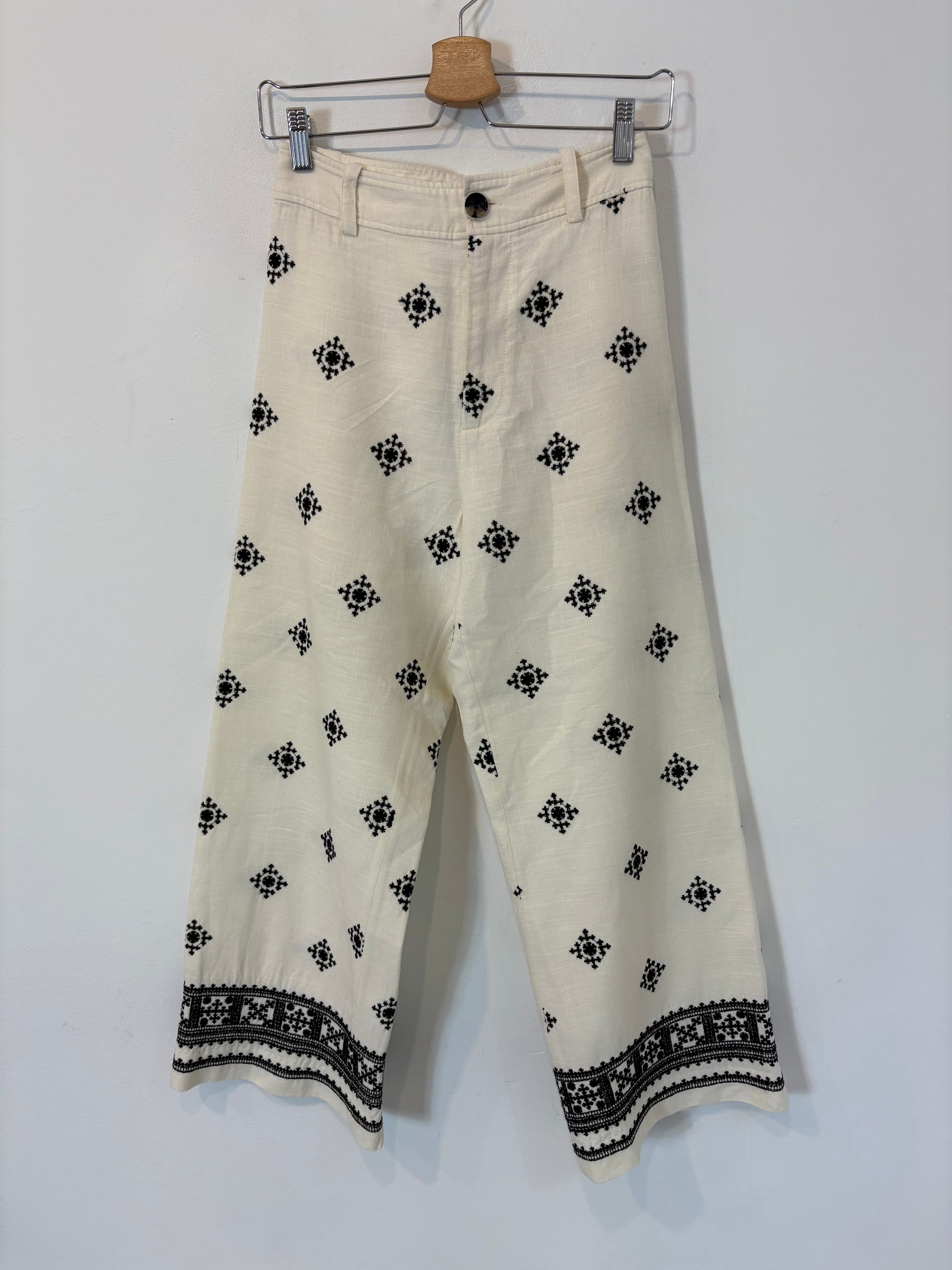 ZARA. Pantalón fluido detalle bordados. T XS
