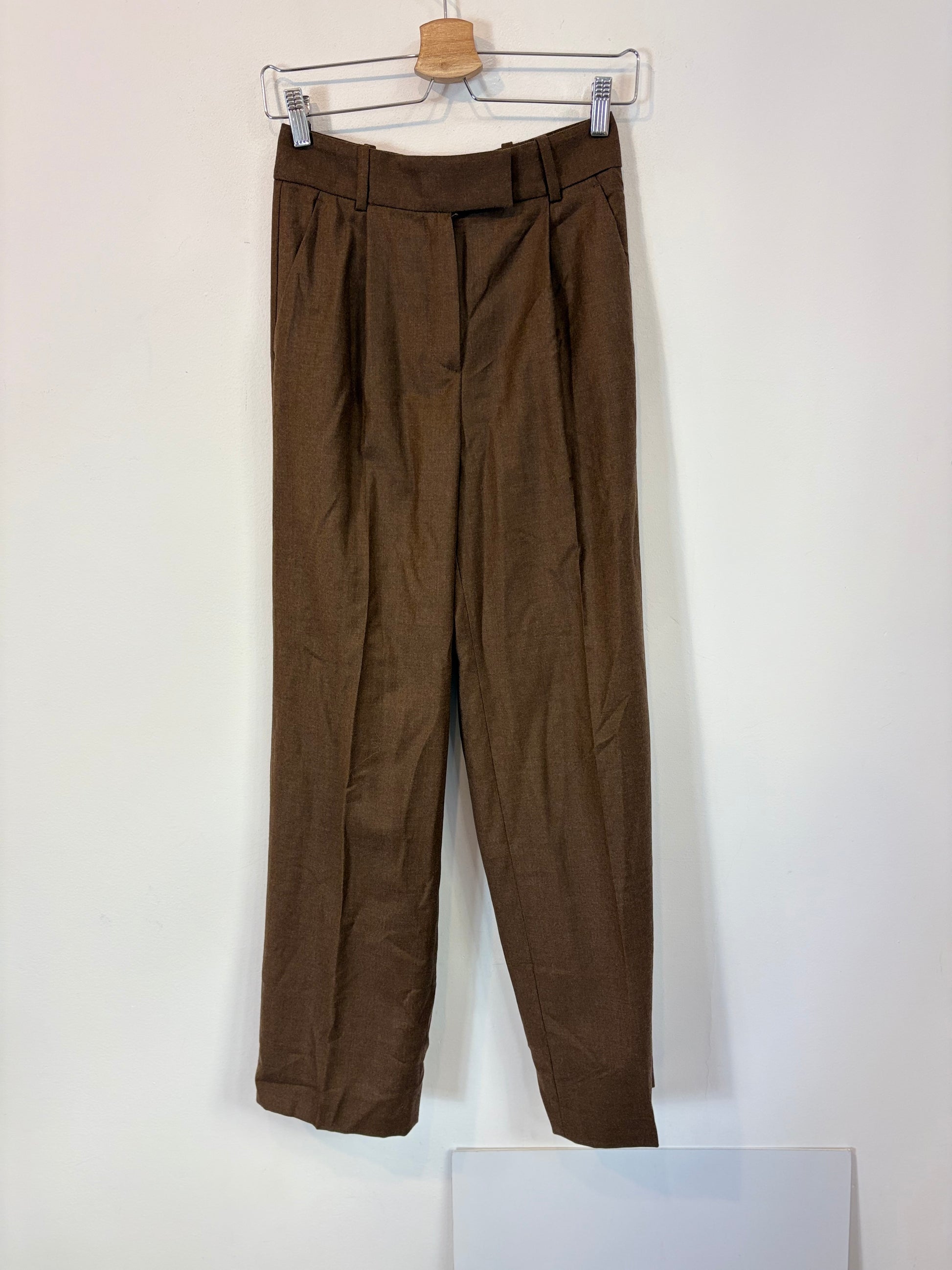 MASSIMO DUTTI. Pantalón pinzas lana marrón